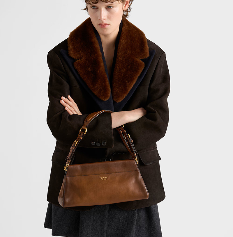 형태는 부드러운 볼륨과 가죽 핸들로 풍부해지며, 액세서리의