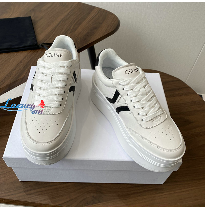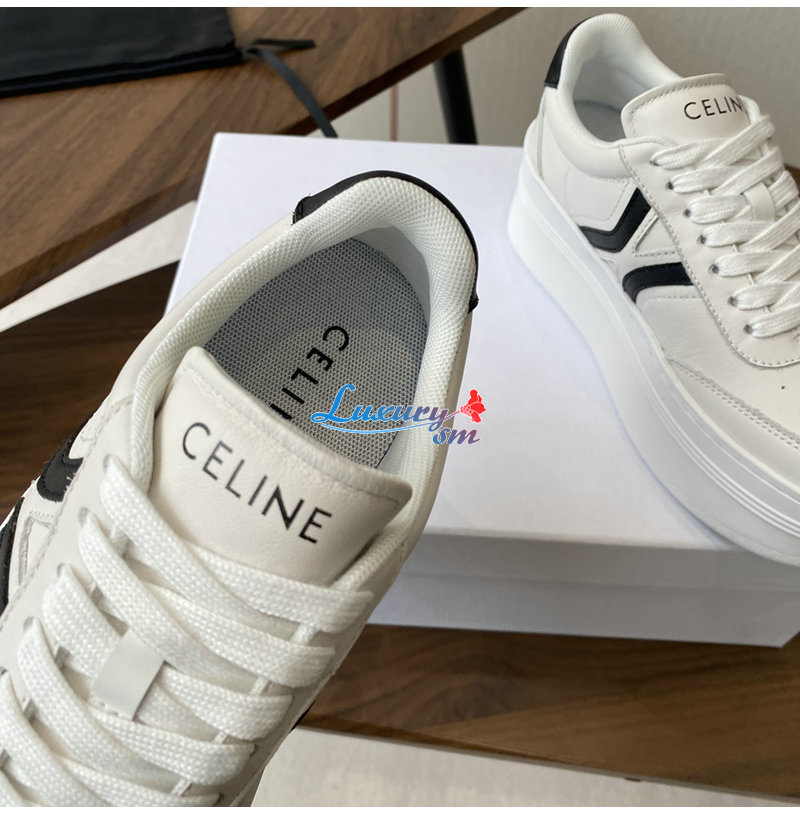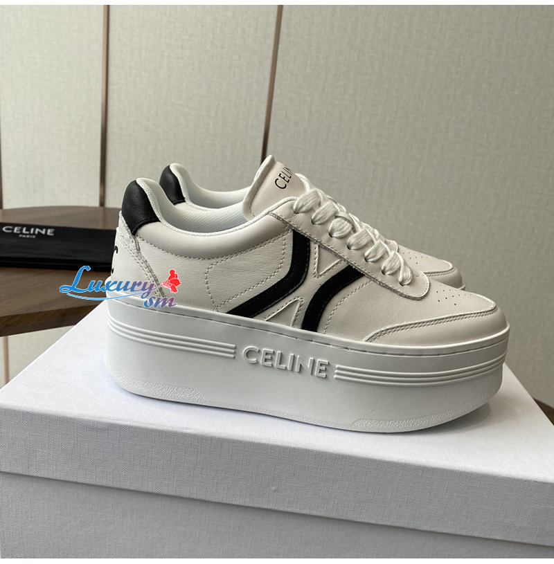 CELINE-365215 셀린느 화이트/블랙 웨지 아웃솔 블록 스니커즈 여성용
