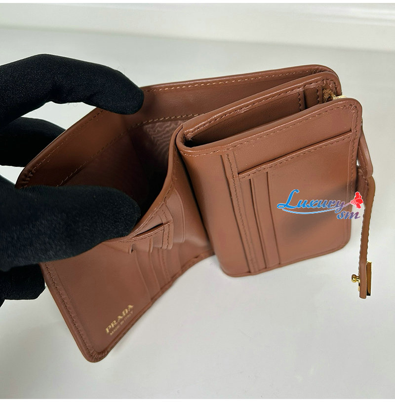[스페셜오더]PRADA-1ML018 프라다 접이식 가죽 반지갑 브라운 여성용