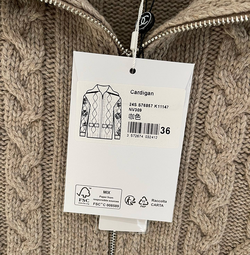 2025년 가을 겨울 제품으로 출시된 샤넬 캐미시어 가디건.