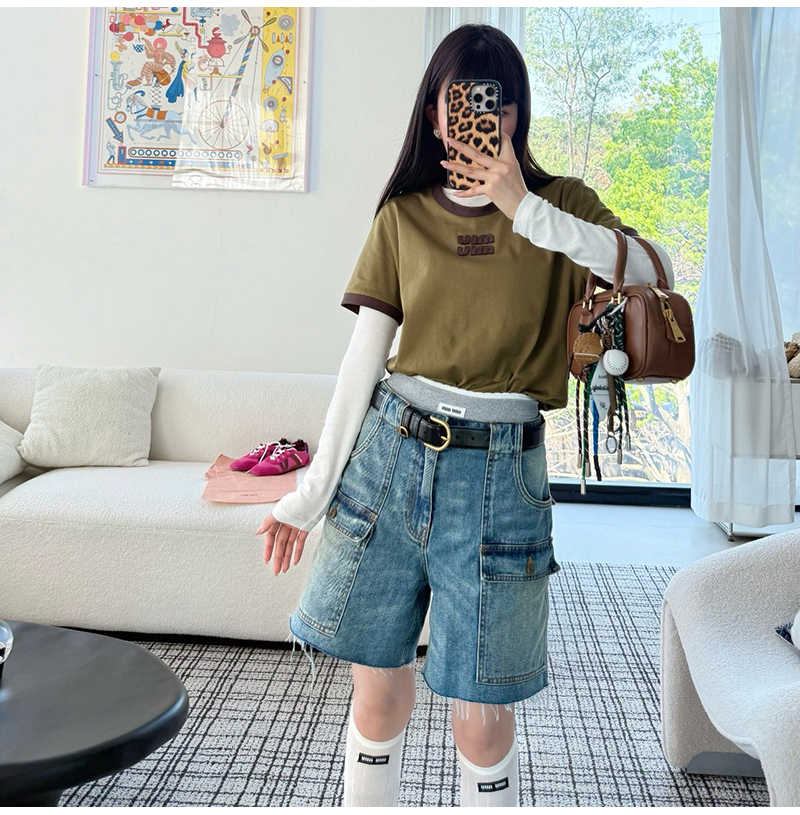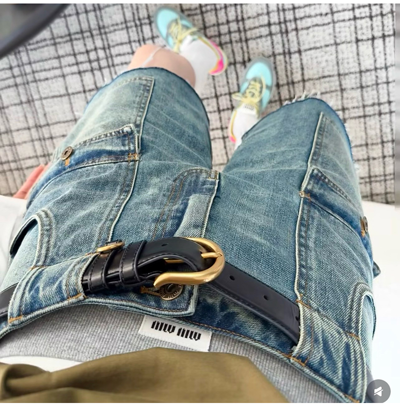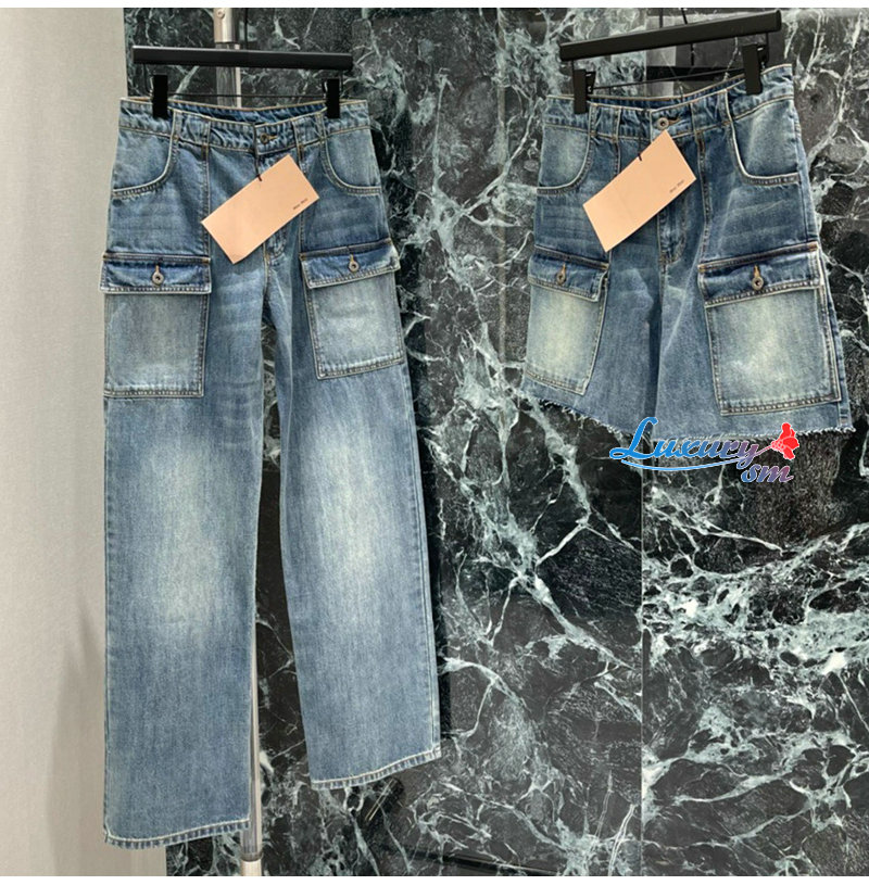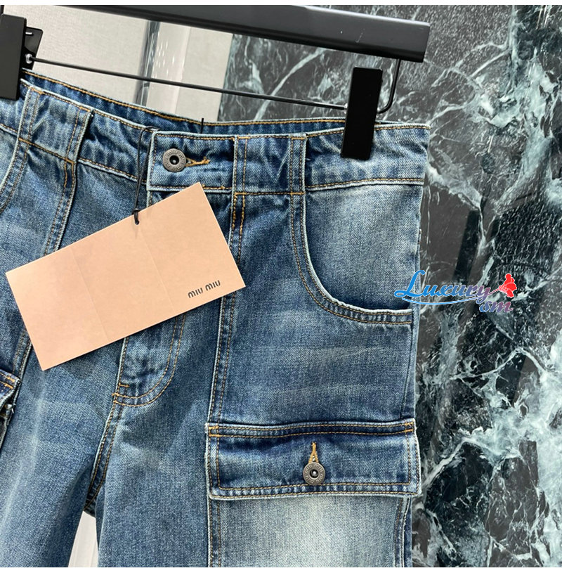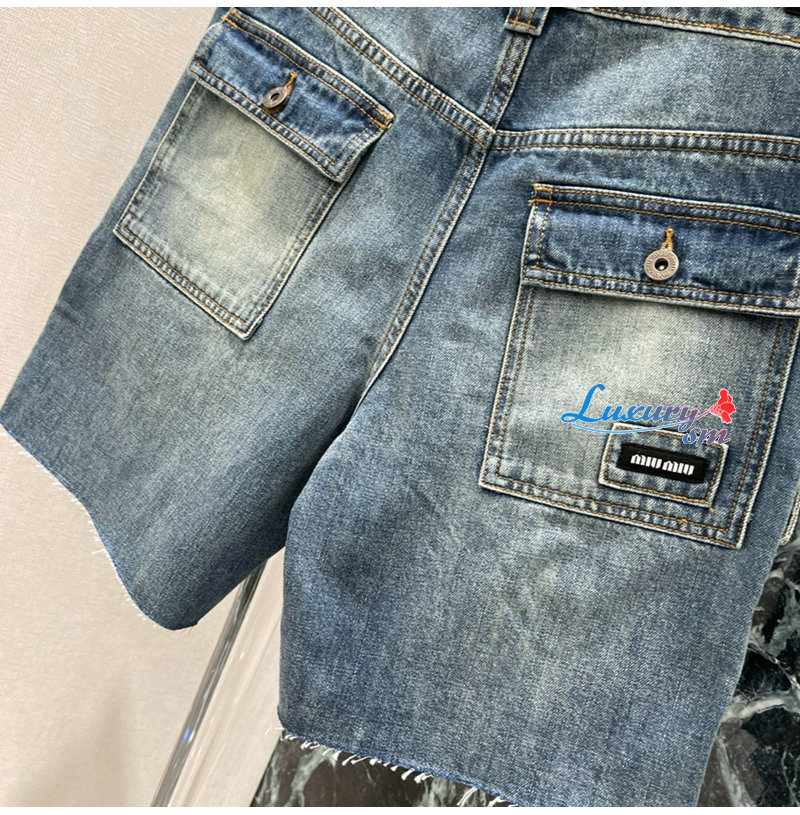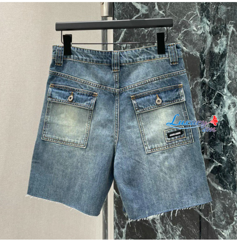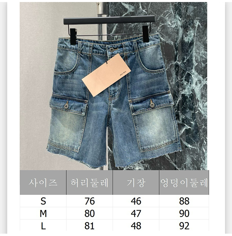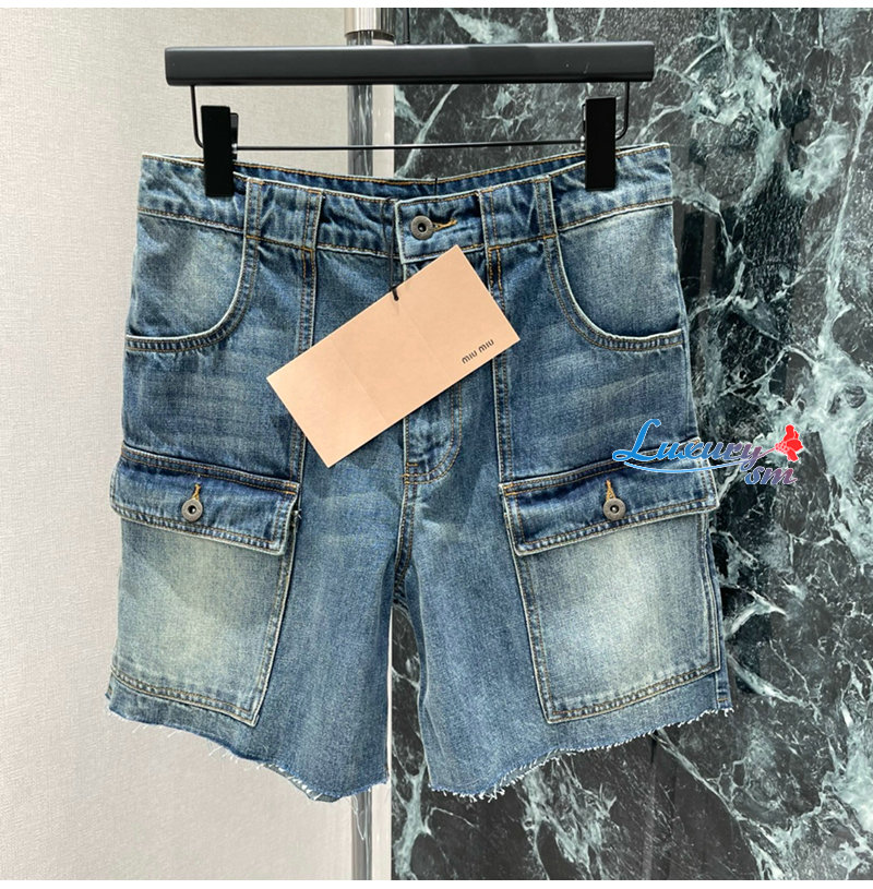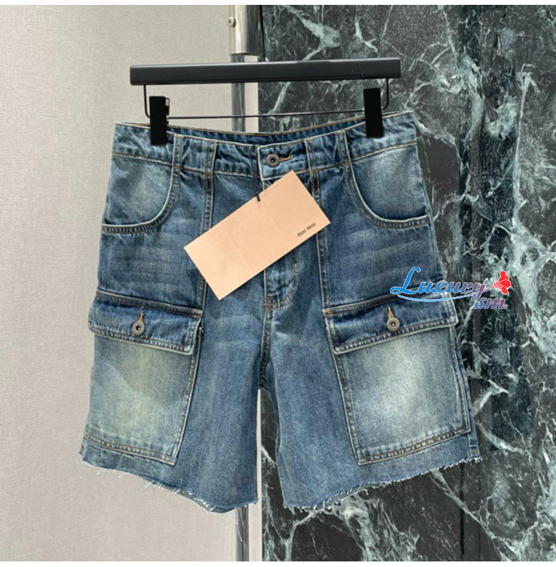 MIUMIU-032402 26년 봄/여름 신상 카고 멀티 포켓 데님 숏팬츠 여성용