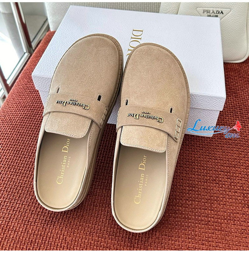 DIOR-3DY7626 디올 스웨이드 가죽 뮬 슈즈 베이지 여성용