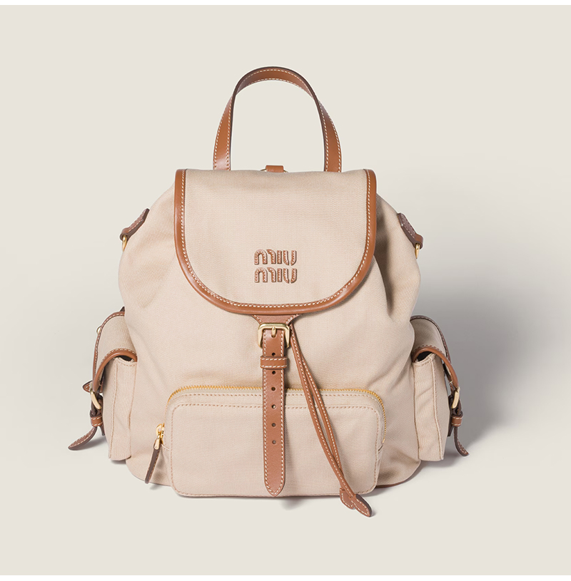 [스페셜오더]MIUMIU-5BZ042 미우미우 캔버스 및 가죽 백팩 베이지