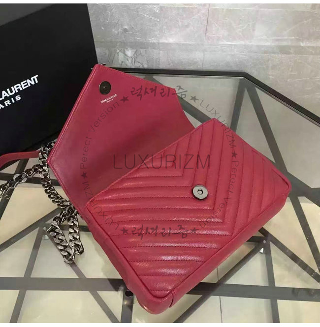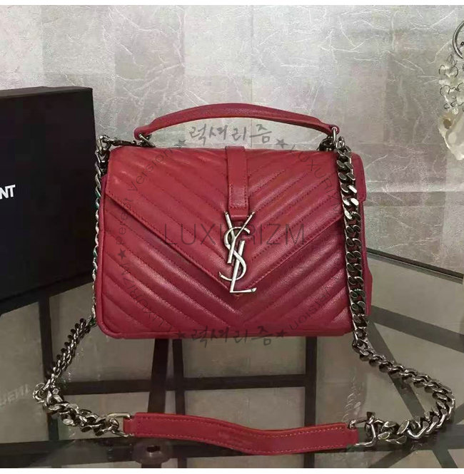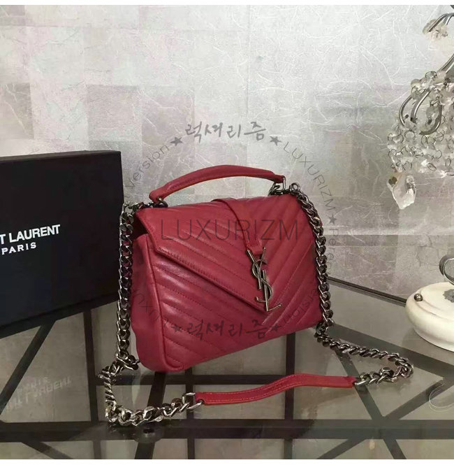 [스페셜오더]SAINT LAURENT-428056 생 로랑 레드 마틀라세 가죽 클래식 은장 미디엄 모노그램 생 로랑 컬리지 백