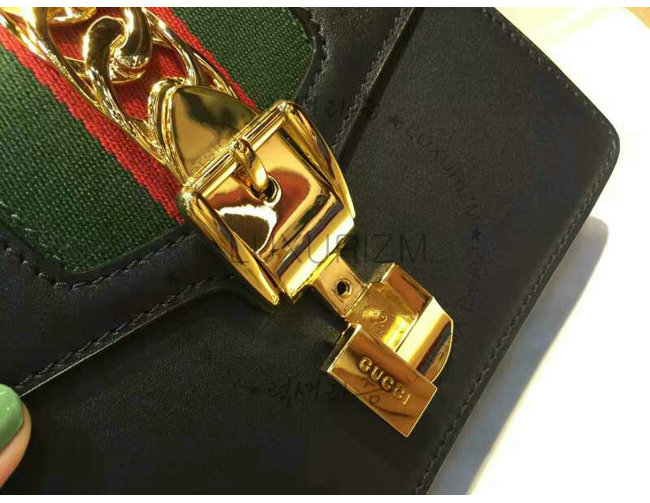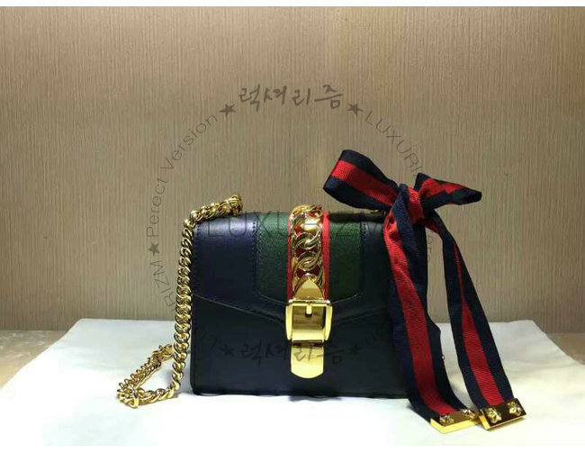 #명품 구찌 레플리카 쇼핑몰 스페셜오더GUCCI-431666 8638구찌Sylvie가죽 나일론web리본 장식 미니 체인백블랙.