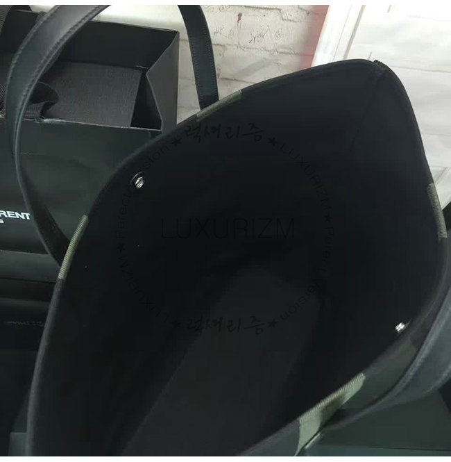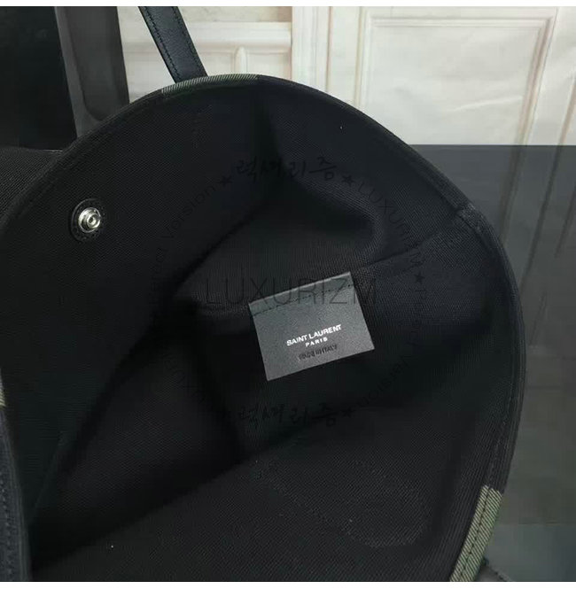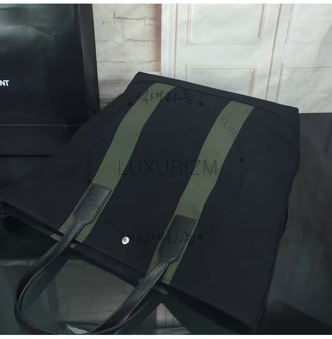 SAINT LAURENT-413054 생로랑 블랙 카키 캔버스 비치 쇼핑 토트 백