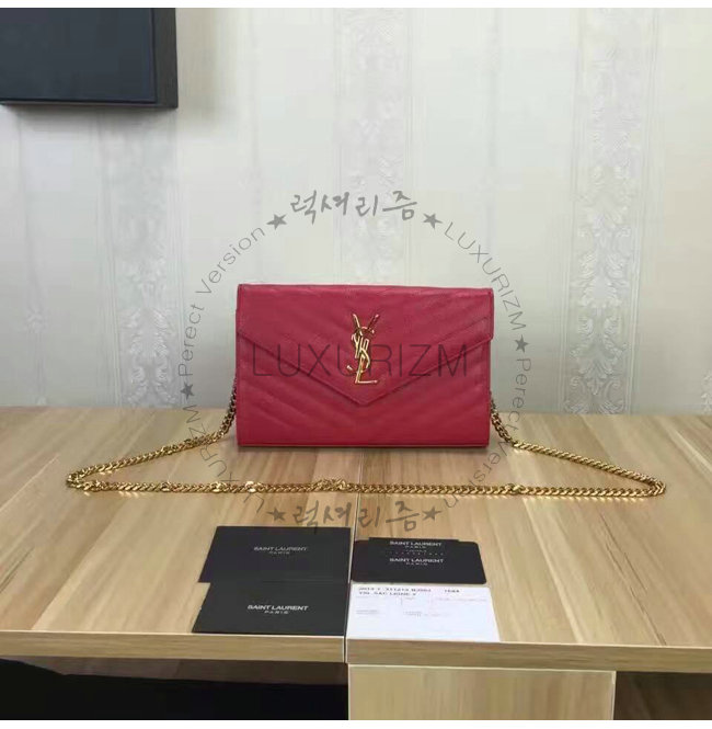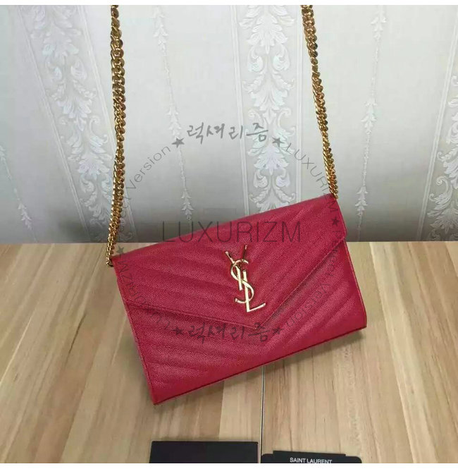 [스페셜오더]SAINT LAURENT-377828 생로랑 립스틱푸시아 마틀라세가죽 금장 모노그램 체인숄더백