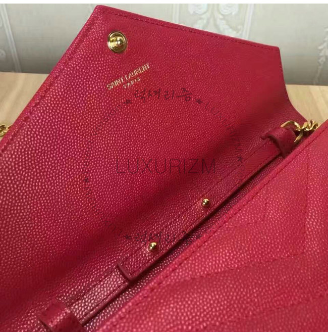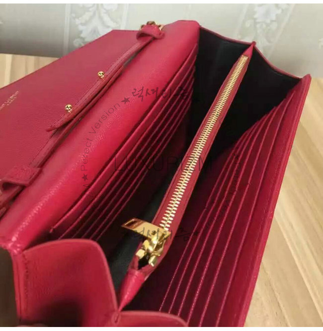 #홍콩 럭셔리즘 스페셜오더SAINT LAURENT-생로랑 레드 금장 그랑 드 뿌드르 텍스처드 마틀라세 가죽 모노그램 생 로랑 체인지갑.