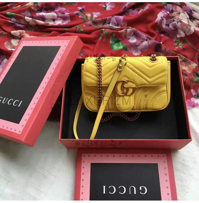 [스페셜오더]GUCCI-446744 7223 구찌 GG Marmont 미니 소프트 스트럭처드 체인 숄더백 옐로우