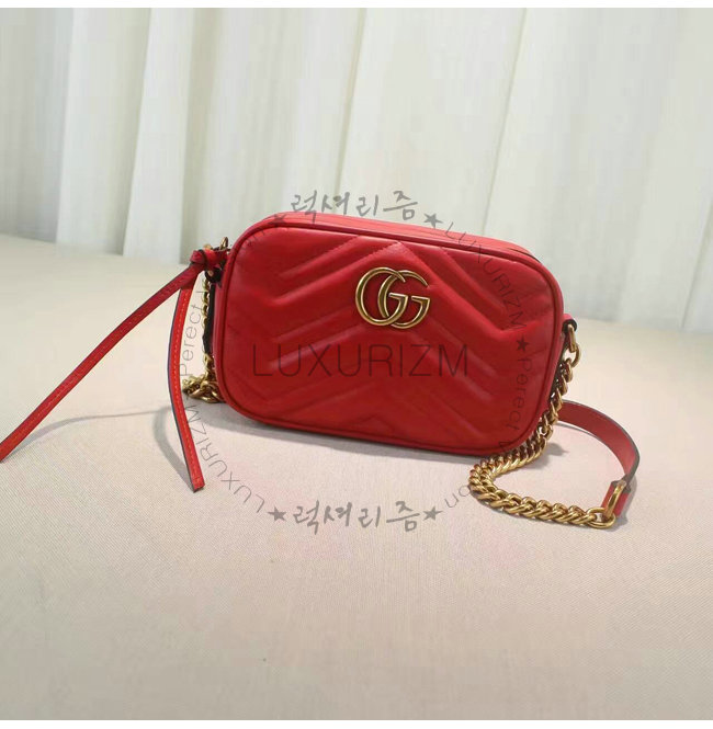 [스페셜오더]GUCCI-448065 6433 구찌 GG Marmont 미니 소프트 스트럭처드 체인 숄더백 레드