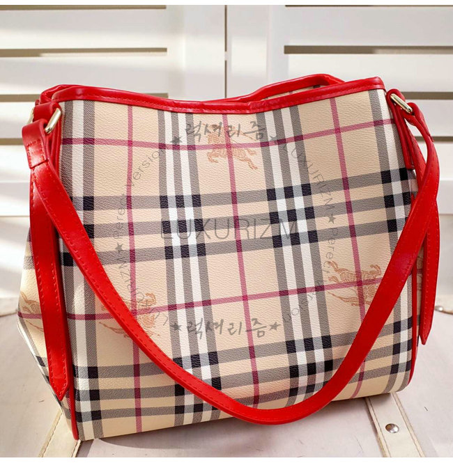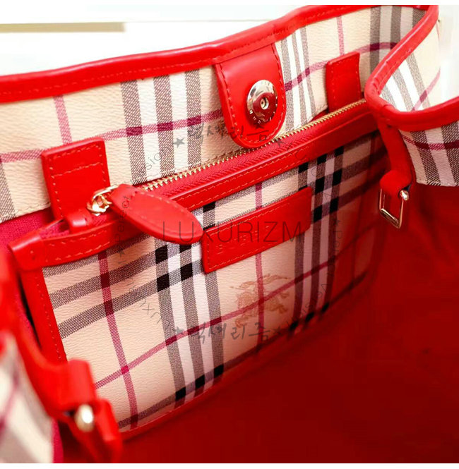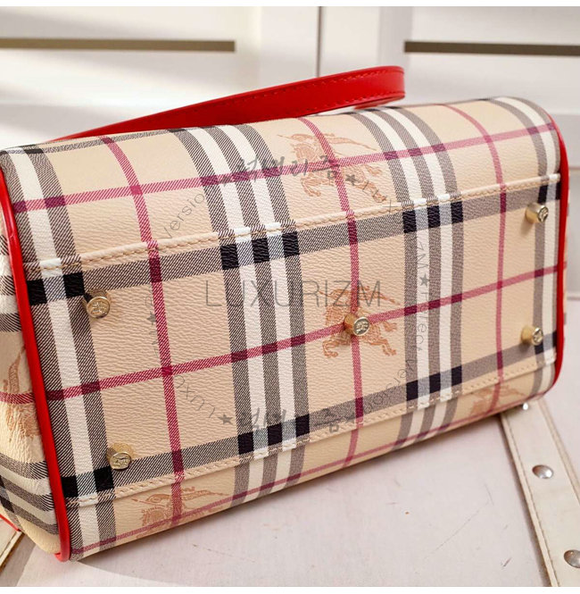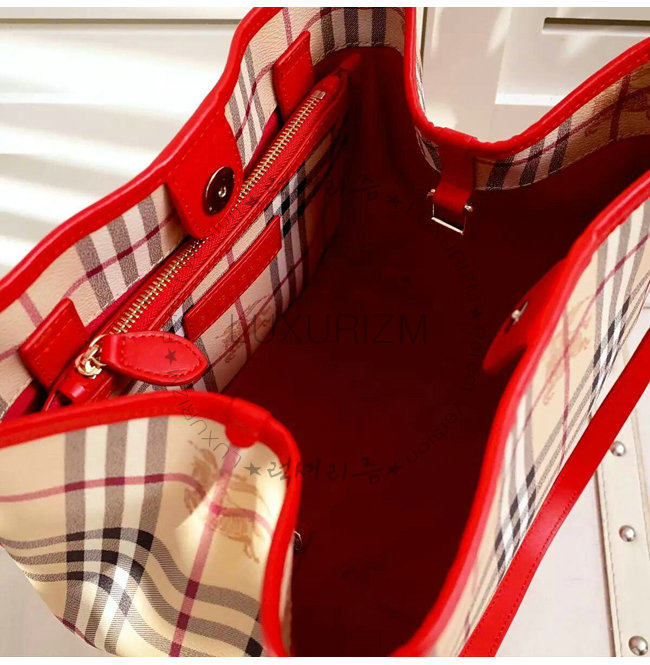 BURBERRY-40124541 버버리 스몰 호스페리 체크 캔터 허니/퍼레이드 레드