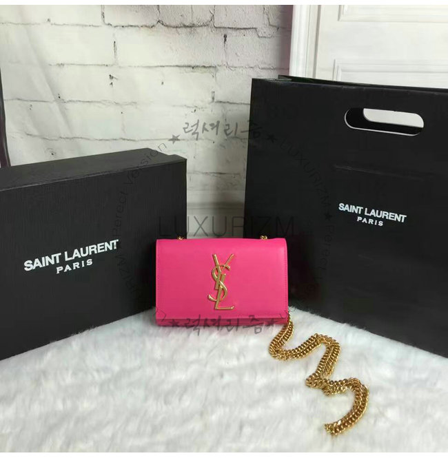 [스페셜오더]SAINT LAURENT-354120 생로랑 립스틱 푸시아 금장 그랑 드 뿌드르 텍스처드 클래식 스몰 모노그램 생 로랑 사첼 백