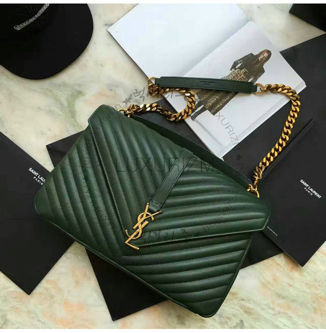 #홍콩명품 생로랑 이미테이션 쇼핑몰스페셜오더]SAINT LAURENT-생로랑 다크 그린 클래식 금장 라지 모노그램 생 로랑 컬리지백.