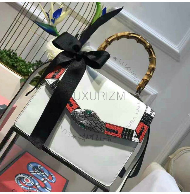 텍스처드 스네이크 헤드. 뱀부 탑 핸들 블랙 그로그랭 보우디테일.부드러운 가죽으로 제작.