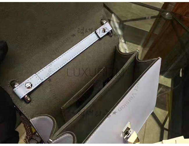 -청회색 컬러 송아지 가죽 미니백/컴팩트한 내부에 파티션으로 분리되는 거싯 수납 공간1개.
