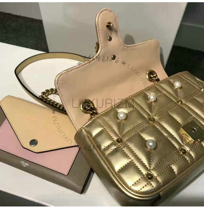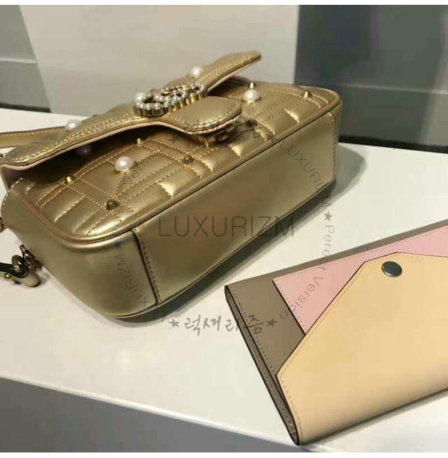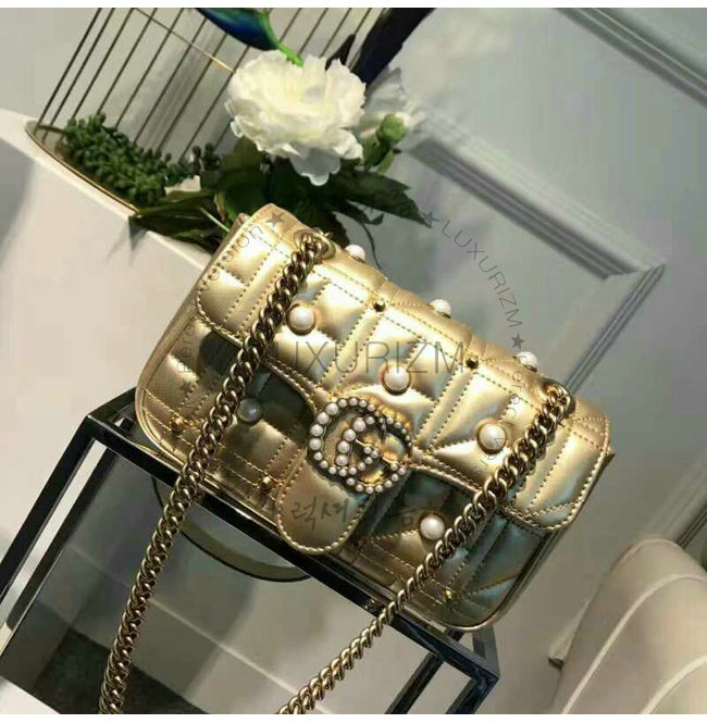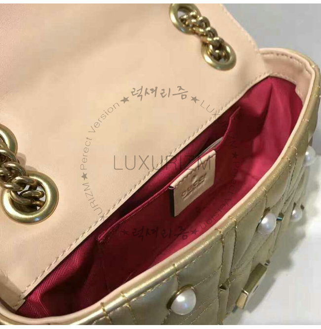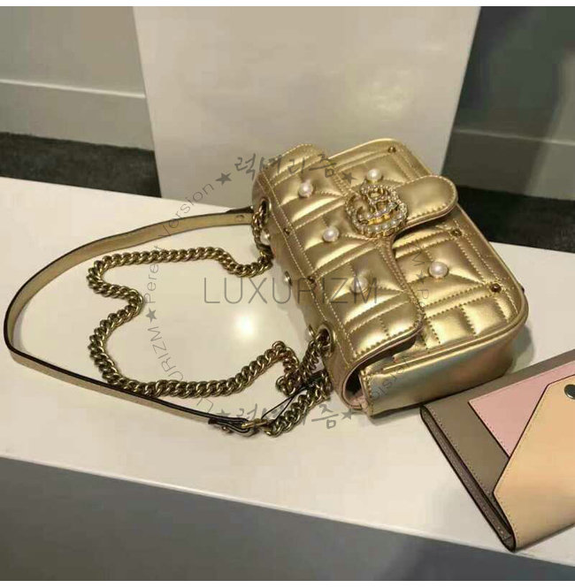 [스페셜오더]GUCCI-446744 8187 구찌 GG Marmont 골드 메탈릭 마틀라세 미니 백