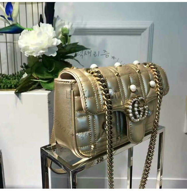 #홍콩명품 구찌가방 미러급 쇼핑몰스페셜오더GUCCI-446744 8187 구찌 GG Marmont 골드 메탈릭 마틀라세 미니백.