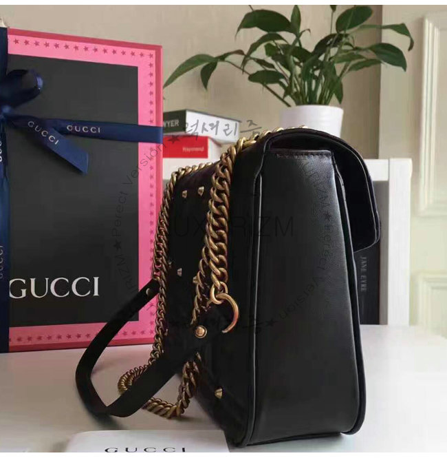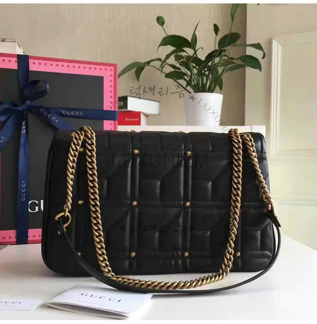 [스페셜오더]GUCCI-443496 1000 구찌 GG Marmont 마몽 마틀라세 미디엄 스트럭처드 체인 숄더백 블랙