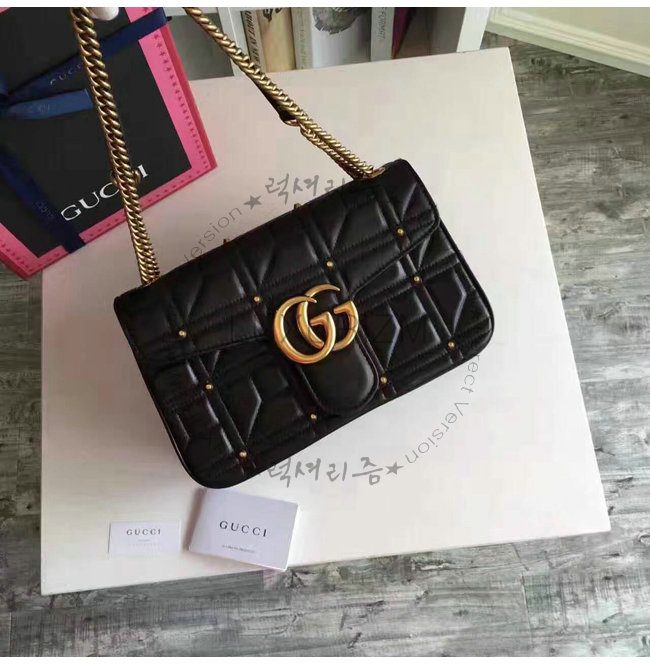 #구찌 홍콩 이미테이션 1대1 특SA급 쇼핑몰 스페셜오더 구찌443496 1000 GG 마몽 마틀라세 미디엄 스트럭처드 체인 숄더백블랙.