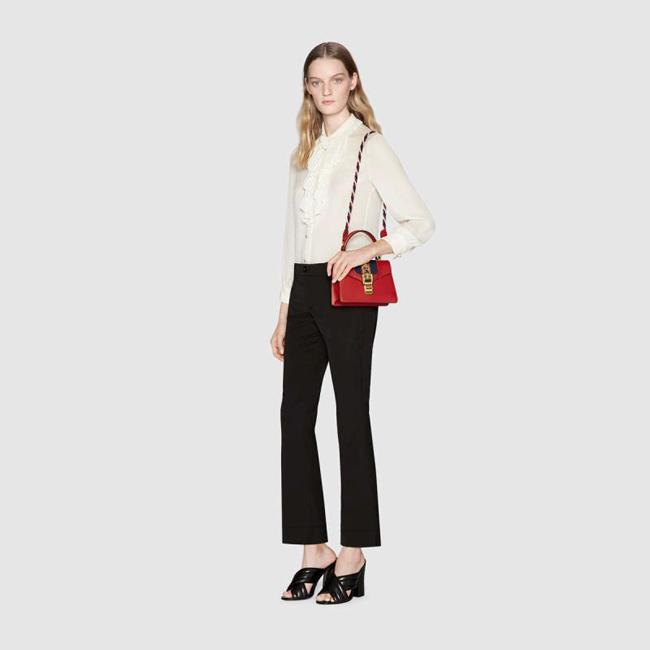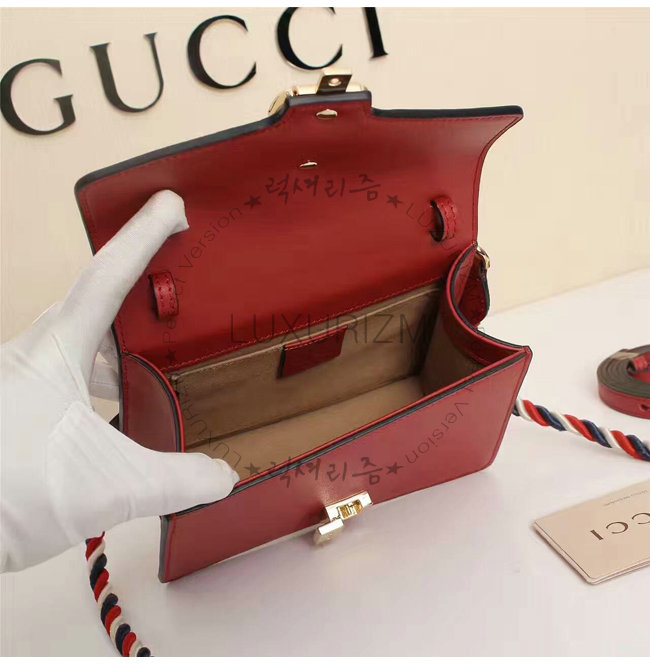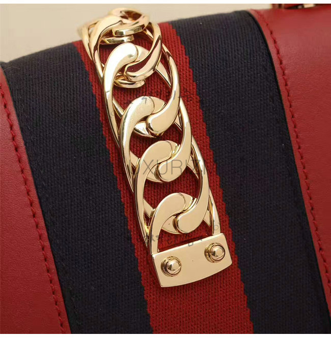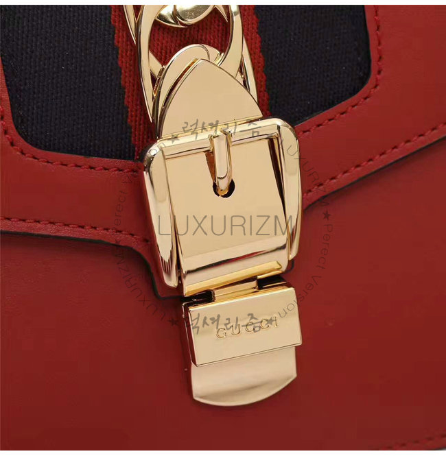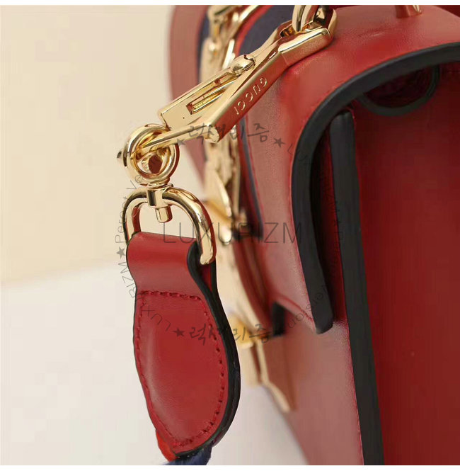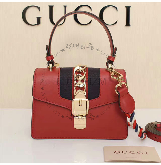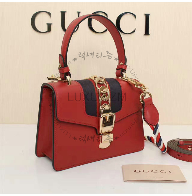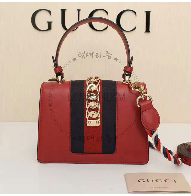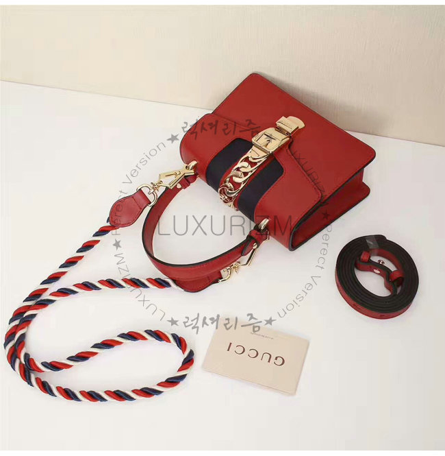 [스페셜오더]GUCCI-470270 8457 구찌 Sylvie 실비 미니 Web 디테일 골드 체인,버클 장식 탑 핸들 백 레드