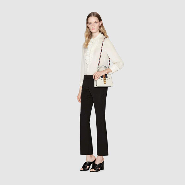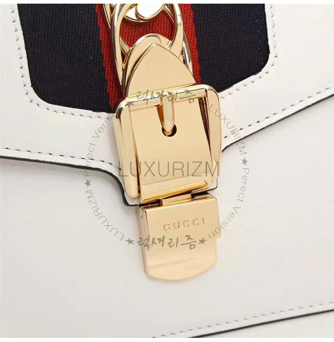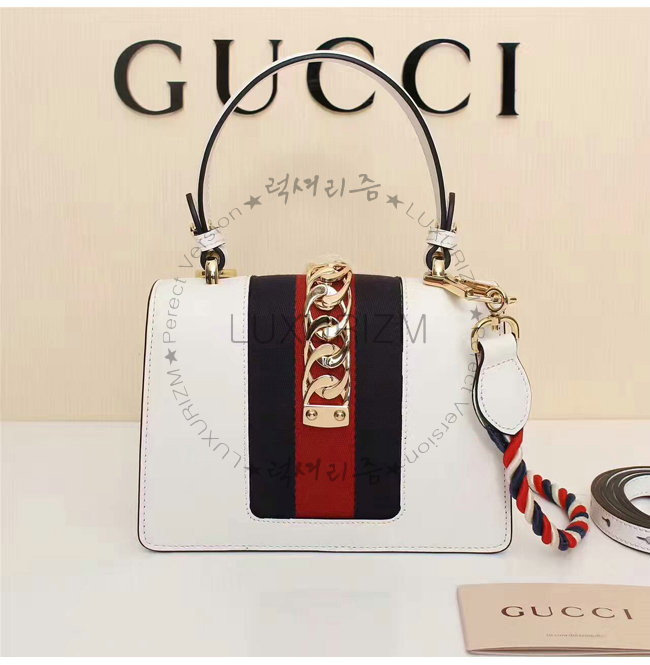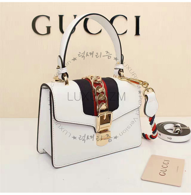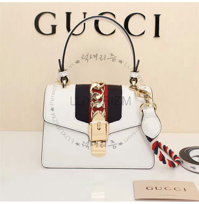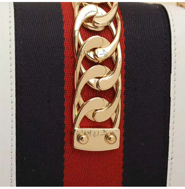 [스페셜오더]GUCCI-470270 8605 구찌 Sylvie 실비 미니 Web 디테일 골드 체인,버클 장식 탑 핸들 백 화이트