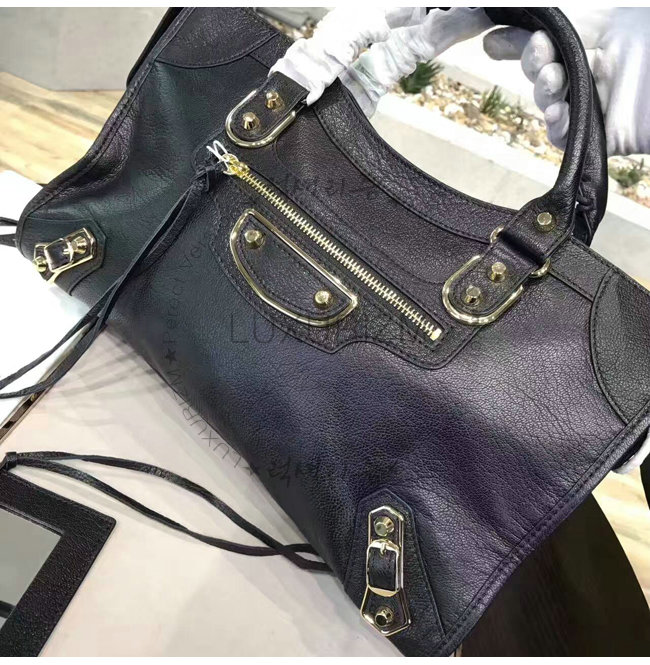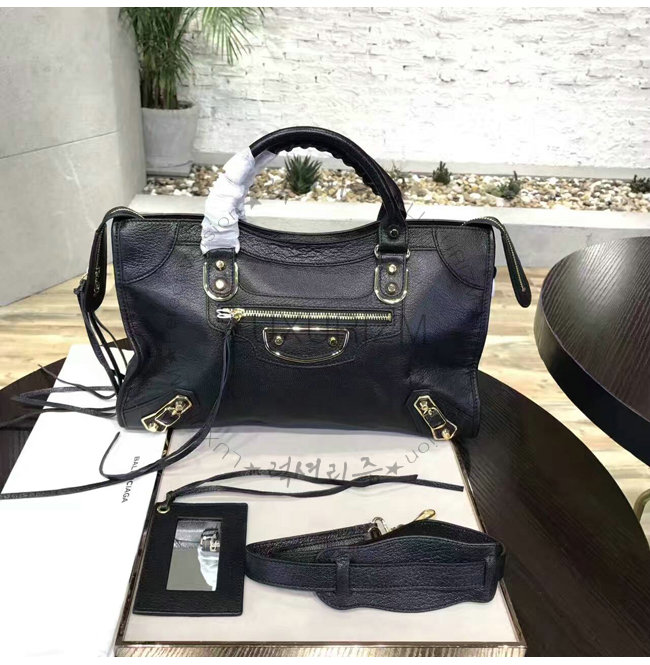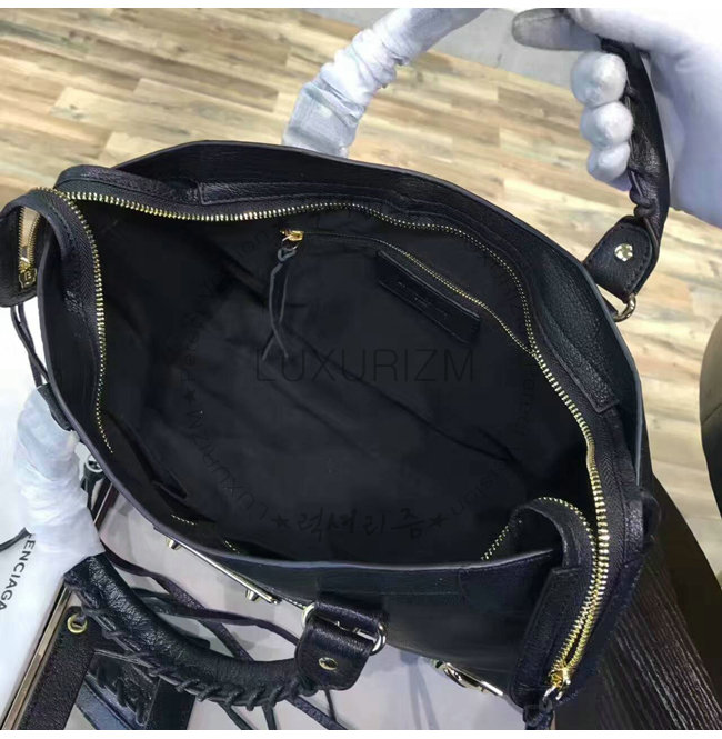 BALENCIAGA-B2915 발렌시아가 클래식 메탈 엣지 시티 미디엄 핸드 캐리 겸용 숄더백 블랙