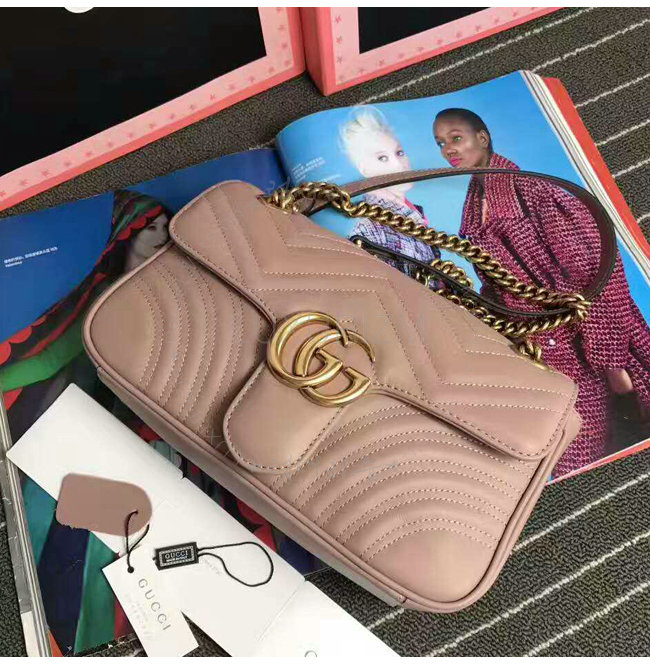[스페셜오더]GUCCI-443497 5729 구찌 GG Marmont 마몽 마틀라세 스몰 체인 숄더 스트랩백 누드