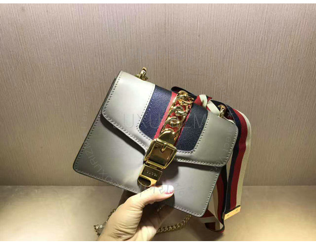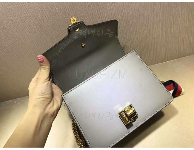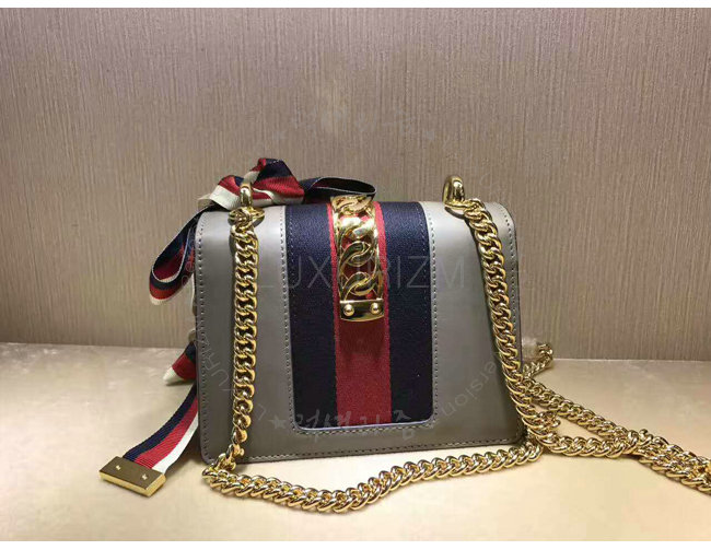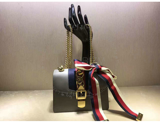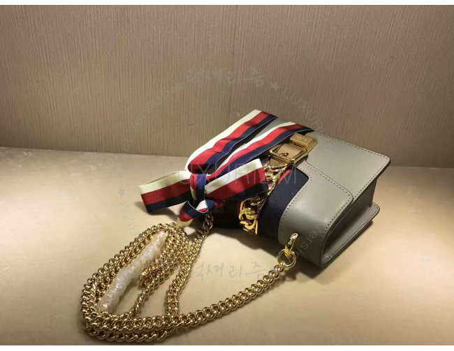 [스페셜오더]GUCCI-431666 1761 구찌 Sylvie 가죽 나일론 web 리본 장식 미니 체인백 그레이