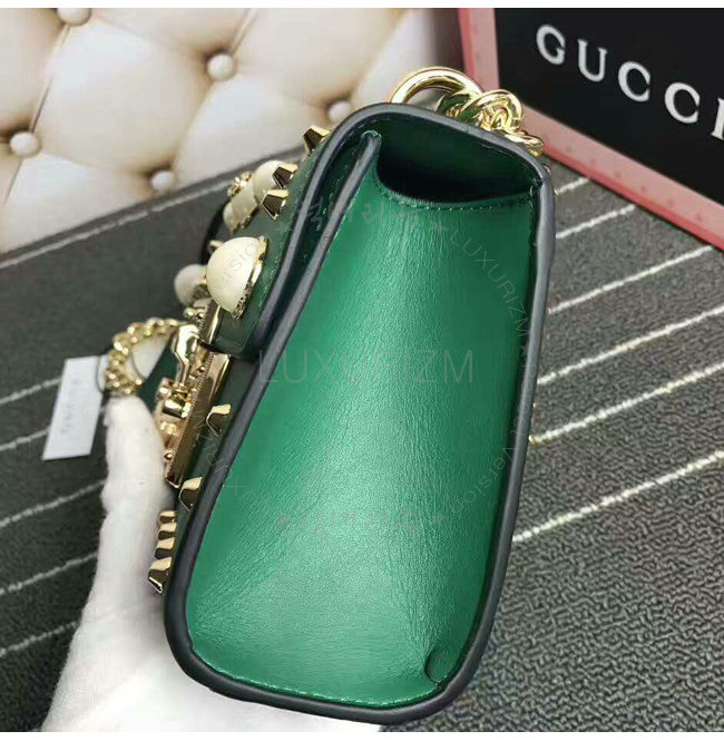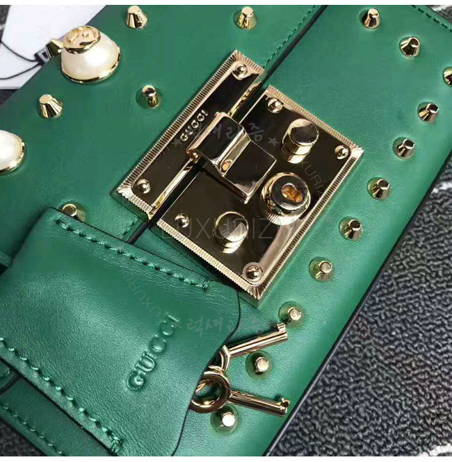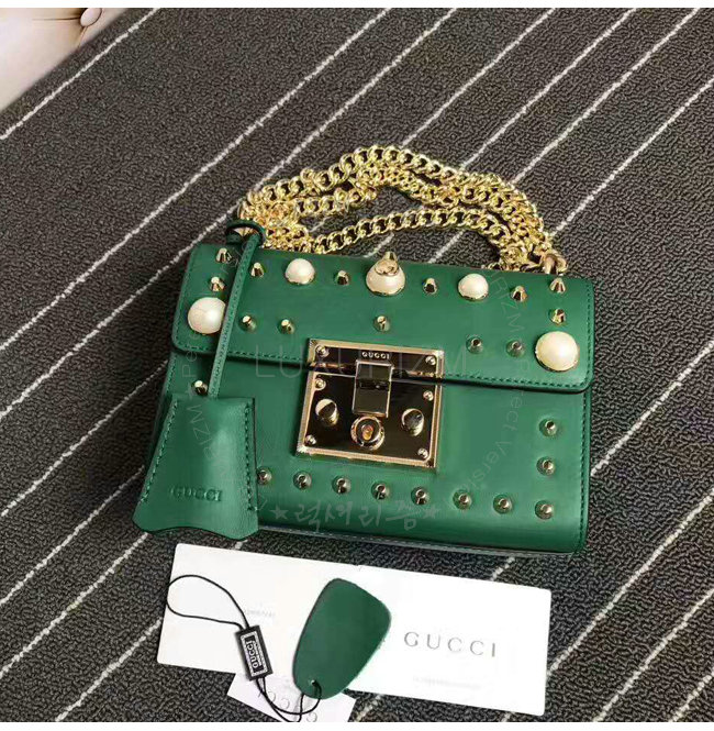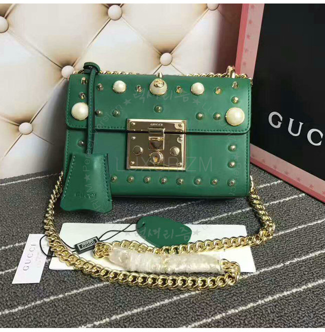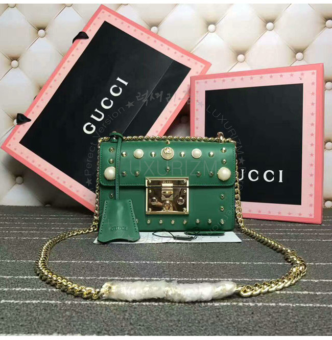 [스페셜오더]GUCCI-432182 3175 구찌 Pad lock 패드락 GG 수프림 펄 스터드 스몰 체인 숄더백 그린
