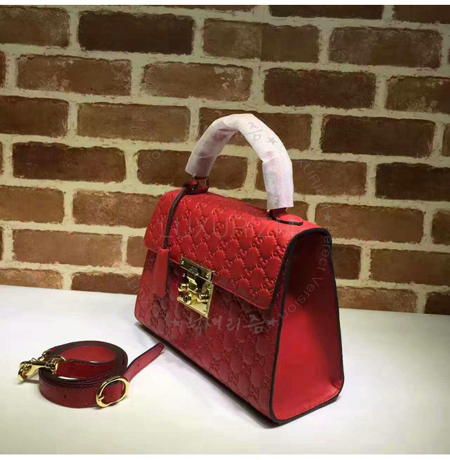 [스페셜오더]GUCCI-453188 6433 구찌 Padlock 패드락 시그니처 스몰 탑 핸들백 레드