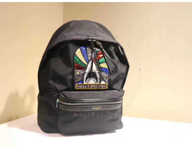 SAINT LAURENT-437087 생 로랑 블랙 캔버스 트윌과 블랙 가죽 소재의 시티 SWEET DREAMS 패치 백팩