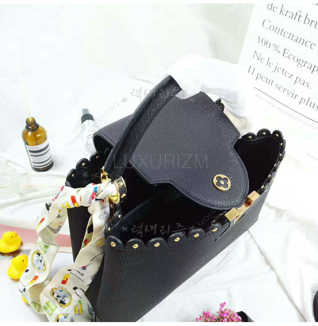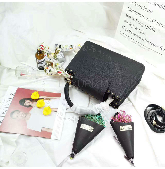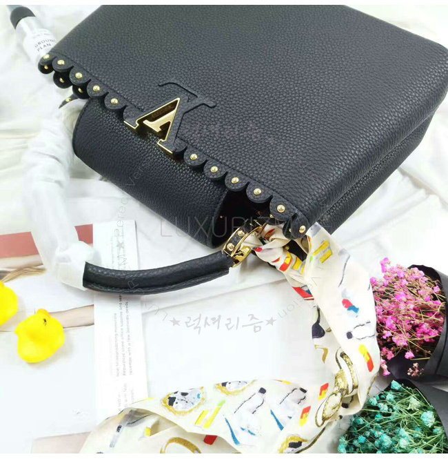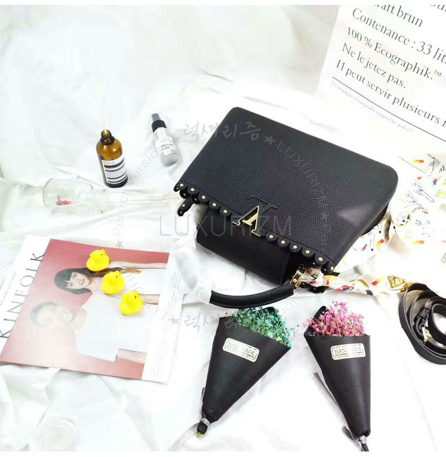 [스페셜오더]LOUIS VUITTON-M54565 루이비통 토뤼옹 레더 레이스 크로셰 스터드 장식 카퓌신 PM 블랙
