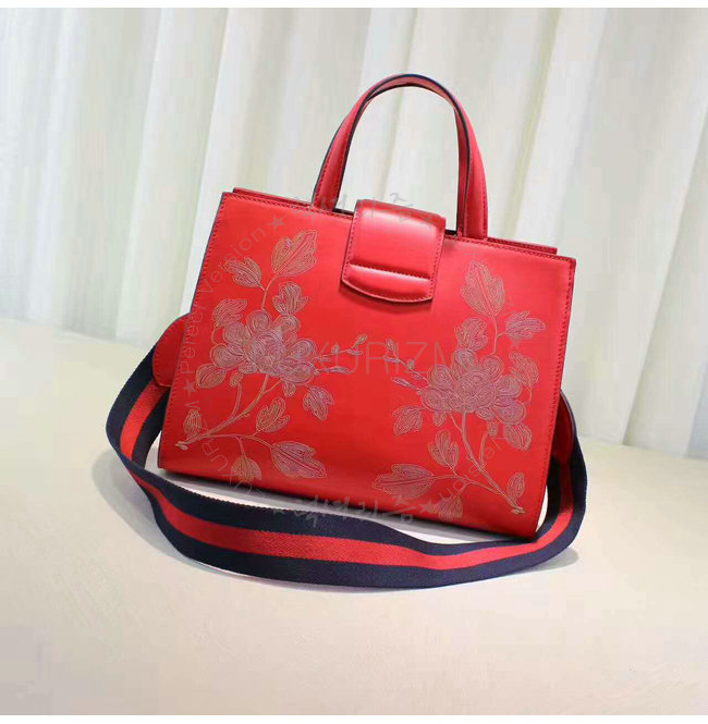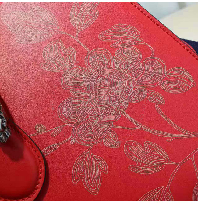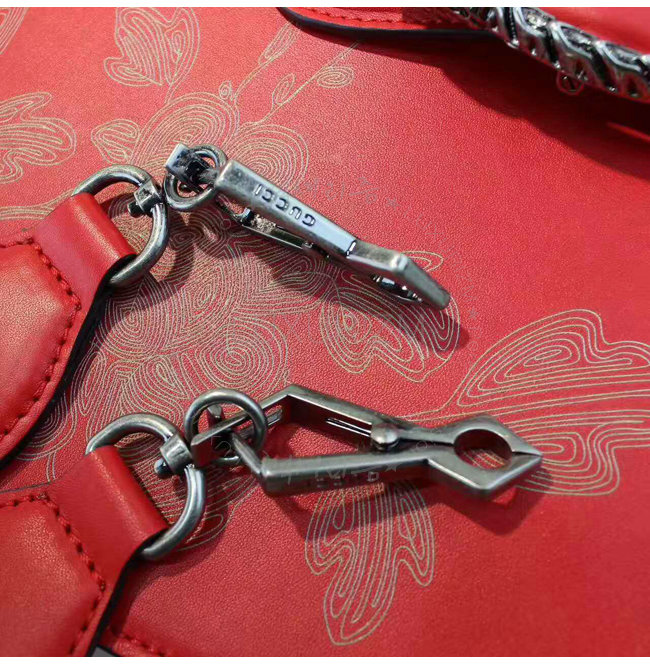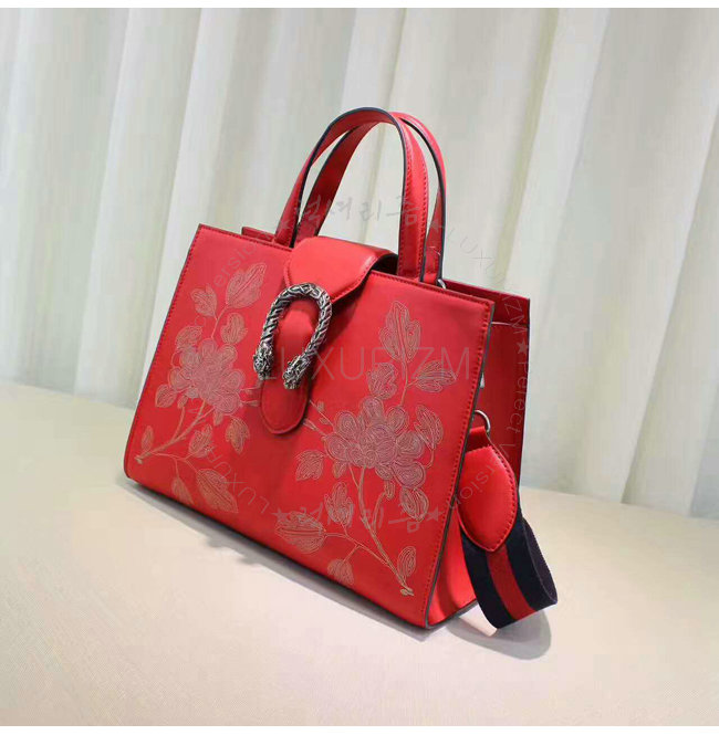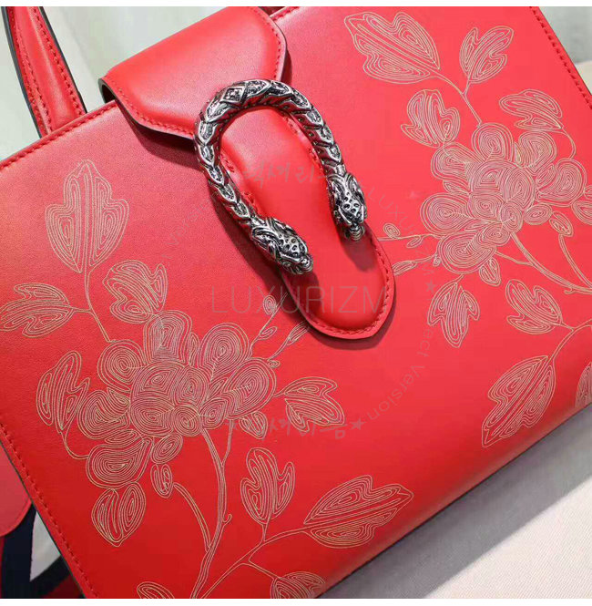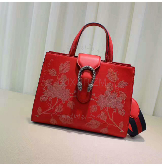 구정을 기념하여 붉은 가죽의 디오니소스 탑 핸들 백 특별판 버전은 라미네이트
