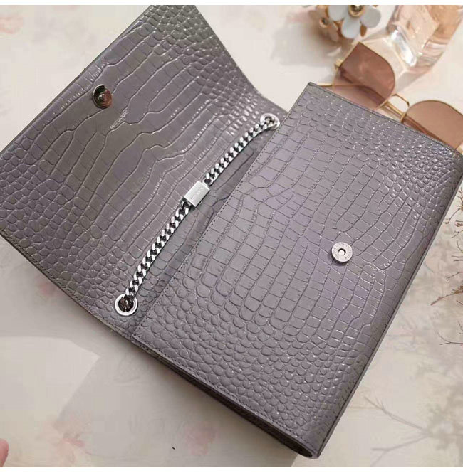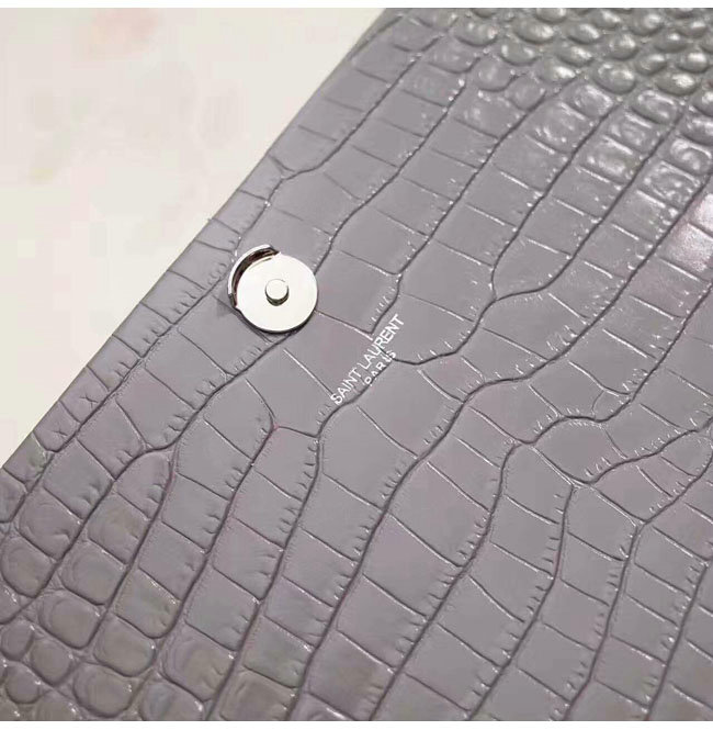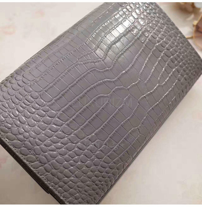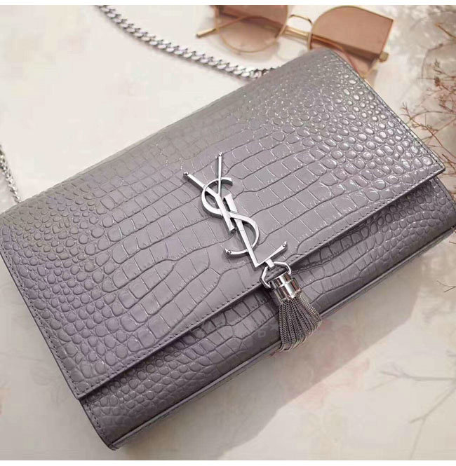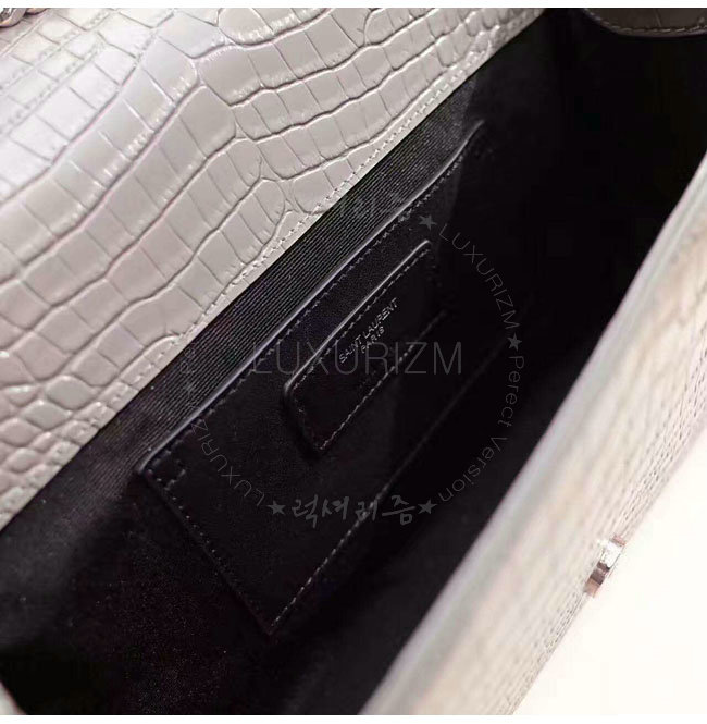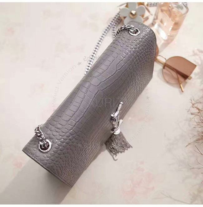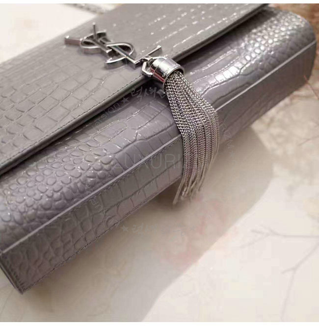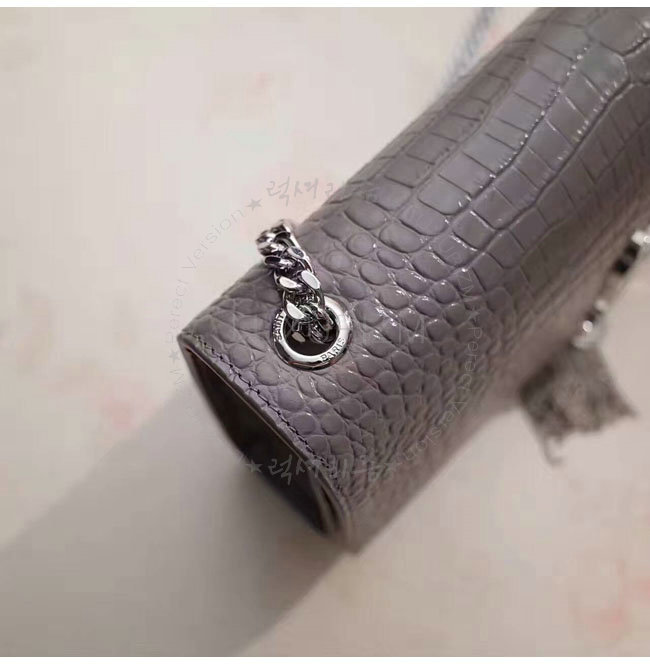 [스페셜오더]SAINT LAURENT-354119 생 로랑 그레이 은장 크로커다일 무늬 샤이니 가죽 클래식 미디엄 케이트 모노그램 생 로랑 태슬 사첼 백