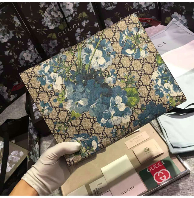 [스페셜오더]GUCCI-430268 8492 구찌 GG 수프림 캔버스 Blooms 코스메틱 케이스 블루