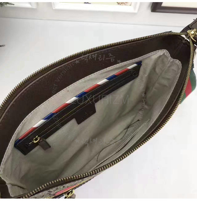 Web 스트랩 내부에 에어메일 파이핑 구찌 트레이드마크 가죽 태그 디테일 내부 지퍼 및 스마트폰