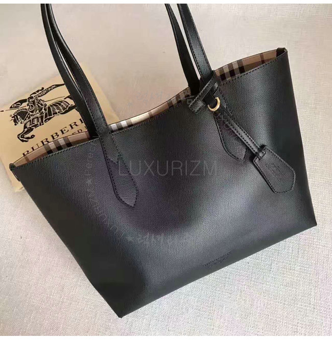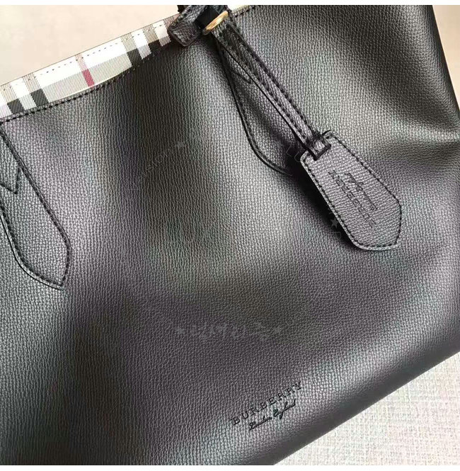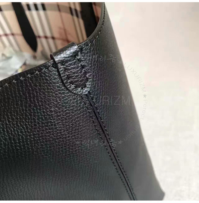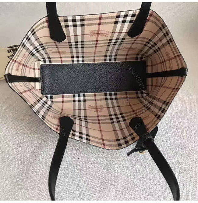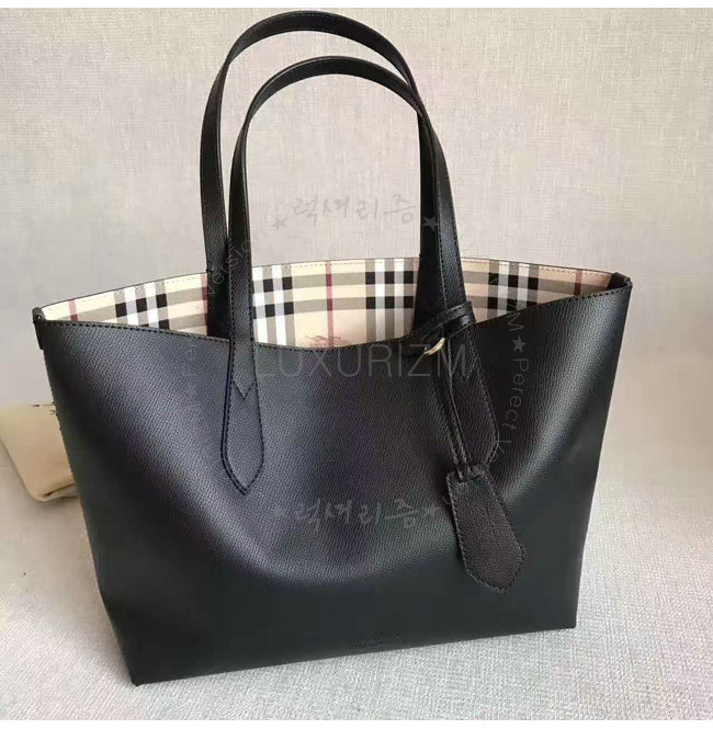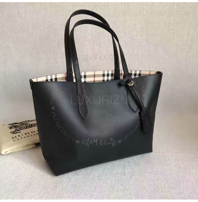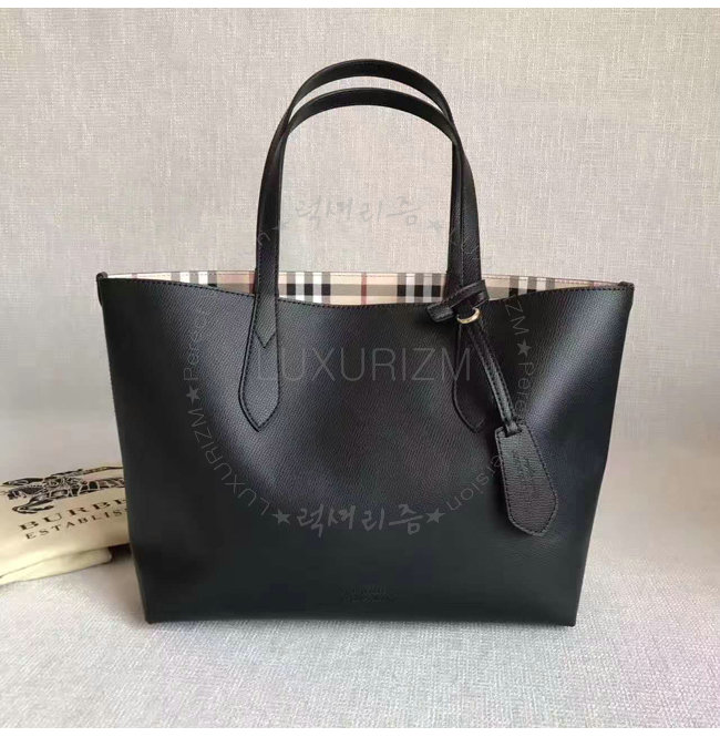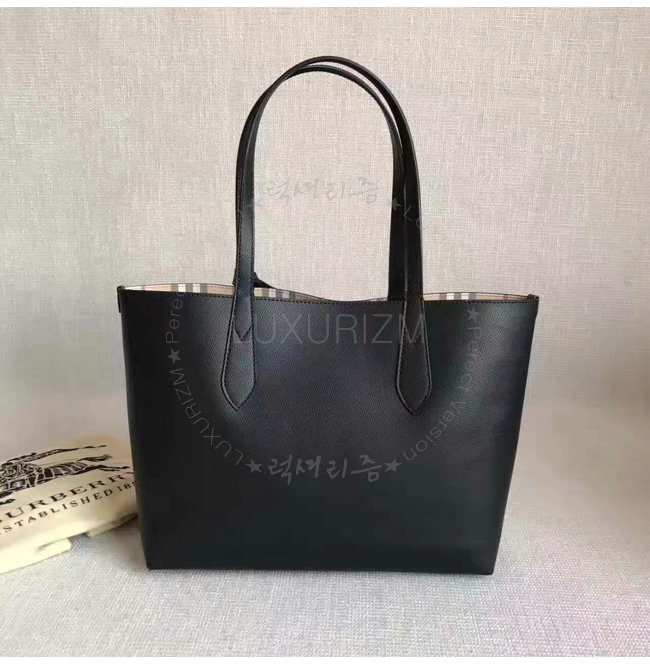 [스페셜오더]BURBERRY-40495851 버버리 스몰 헤이마켓 체크 가죽 리버시블 토트 블랙