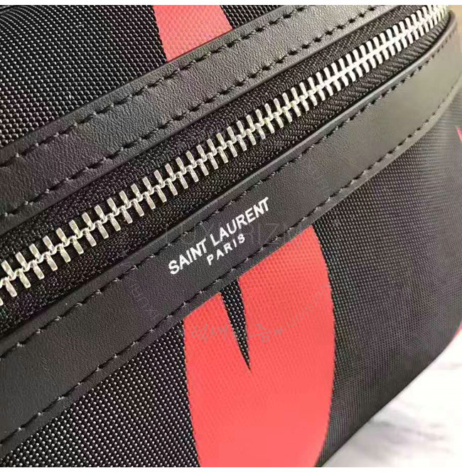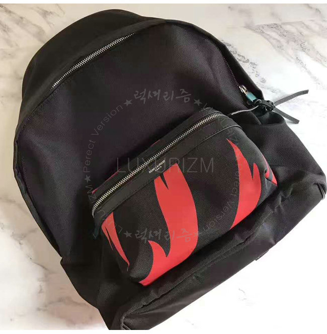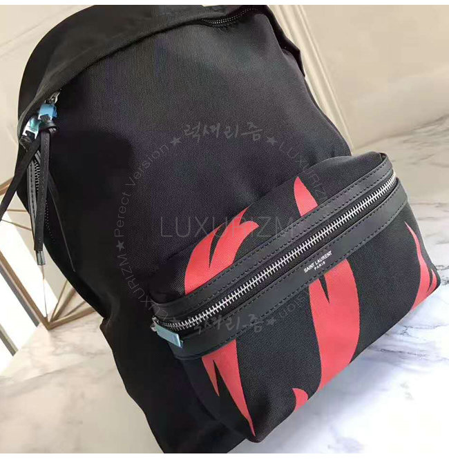 SAINT LAURENT-465448 생 로랑 블랙 레드 나일론 캔버스 시티 플레임 프린트 백팩