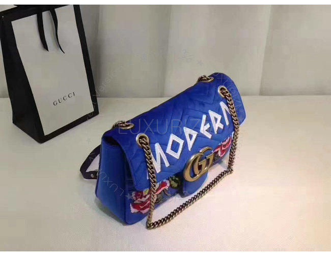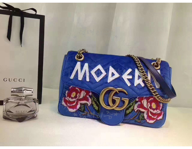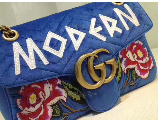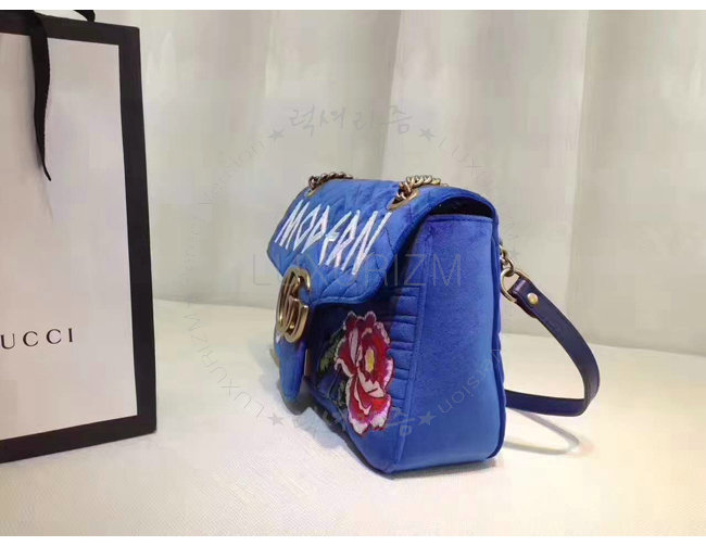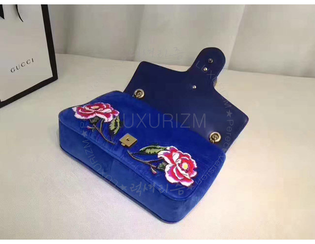 [스폐셜오더]GUCCI-443496 4567 구찌 GG Marmont 벨벳 자수 디테일 미디엄 체인 숄더백 코발트 블루