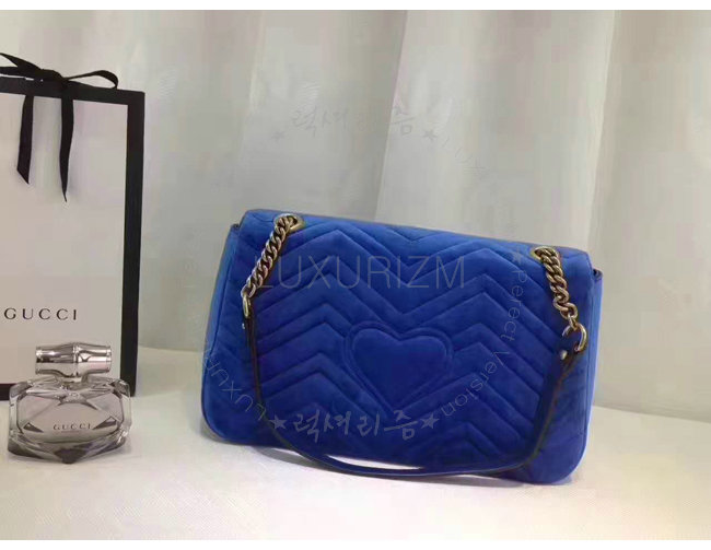 [스폐셜오더]GUCCI-443496 4511 구찌 GG Marmont 벨벳 미디엄 체인 숄더백 코발트 블루