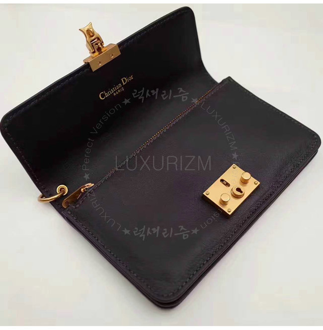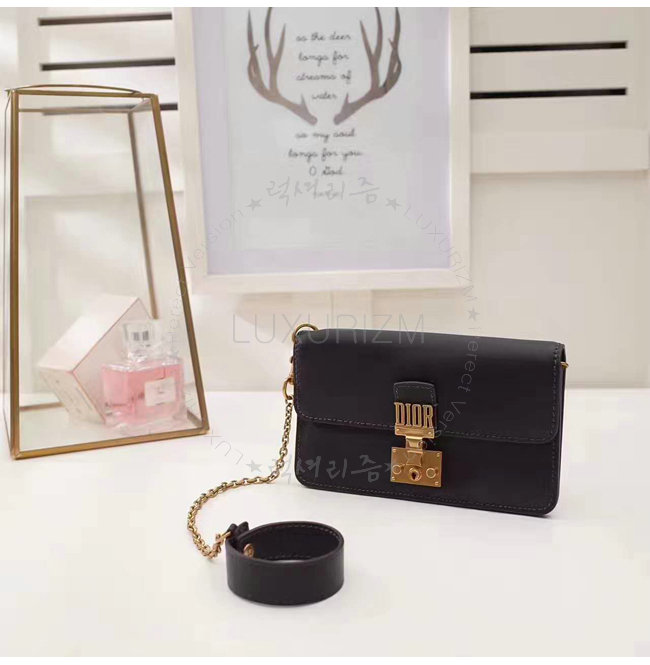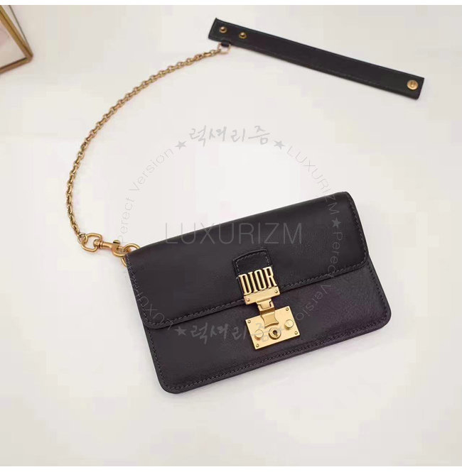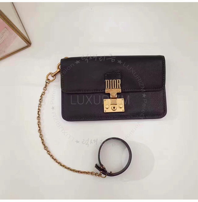 DIOR-S2012 디올 블랙 송아지 가죽 DIORADDICT WALLET ON CHAIN 클러치 백