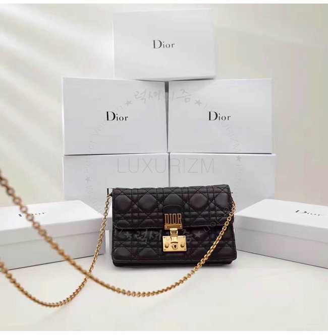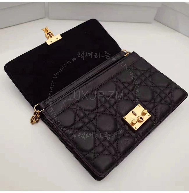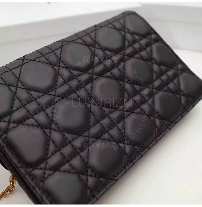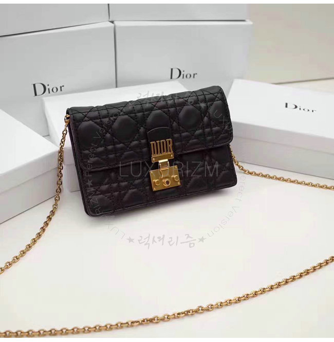 DIOR-S2012 디올 블랙 까나쥬 양가죽 DIORADDICT WALLET ON CHAIN 클러치 백
