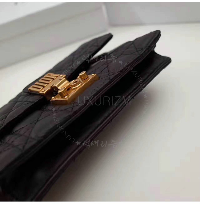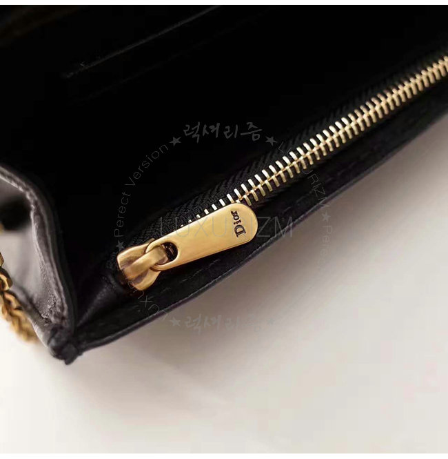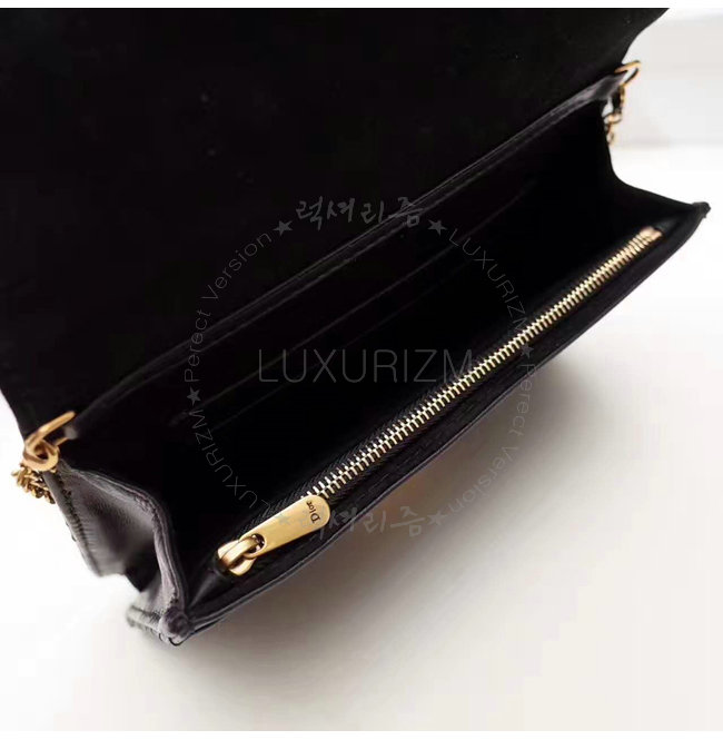 DIOR-S2012 디올 블랙 송아지 가죽 DIORADDICT WALLET ON CHAIN 클러치 백