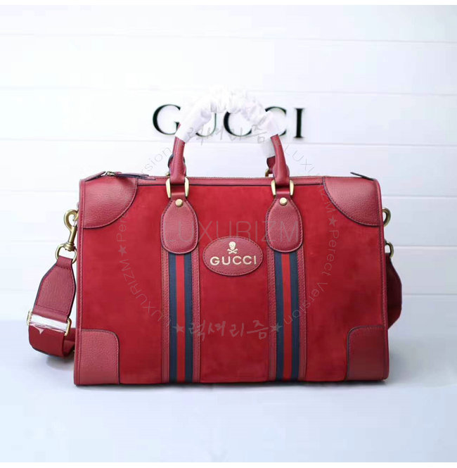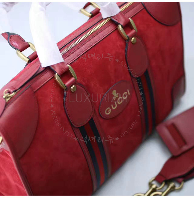 [스페셜오더]GUCCI-480500 8345 구찌 Neo Vintage Web 디테일 소프트 스웨이드 미디엄 더플 백 레드
