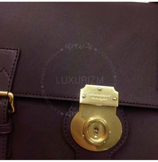 푸시 락 형태의 잠금 장치 수작업으로 마감칠된 테두리 유광 금속 하드웨어 버버리 엠보싱 로고.