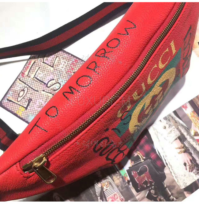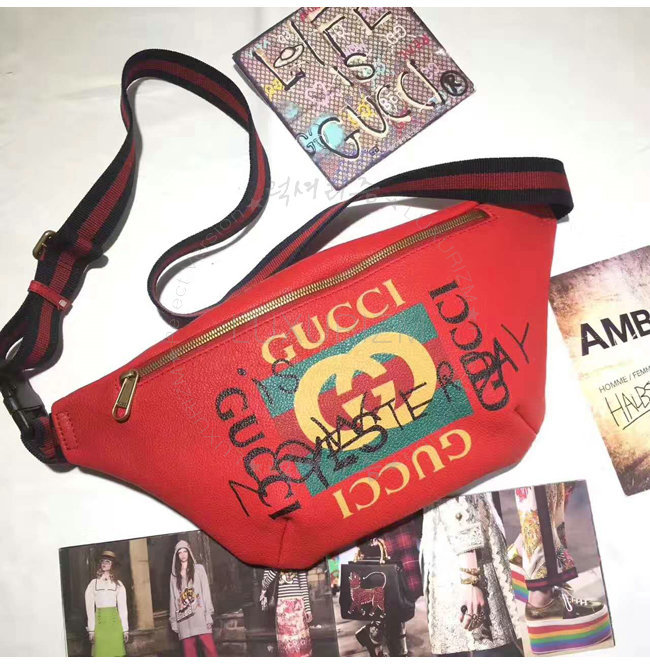 [스페셜오더]GUCCI-493869 6463 구찌 레드 가죽 구찌 프린트 벨트 백