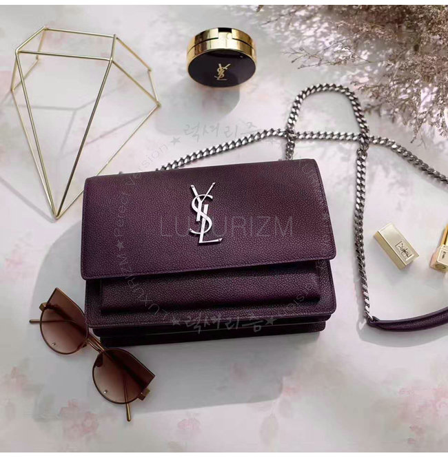 [스페셜오더]SAINT LAURENT-442906 생 로랑 은장 그레인드 가죽 다크 레드 미디엄 선셋 모노그램 생 로랑 백