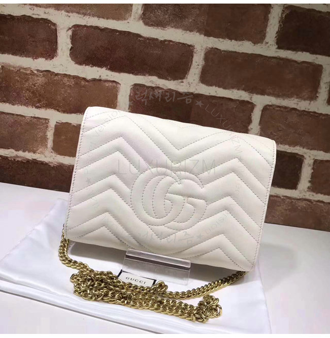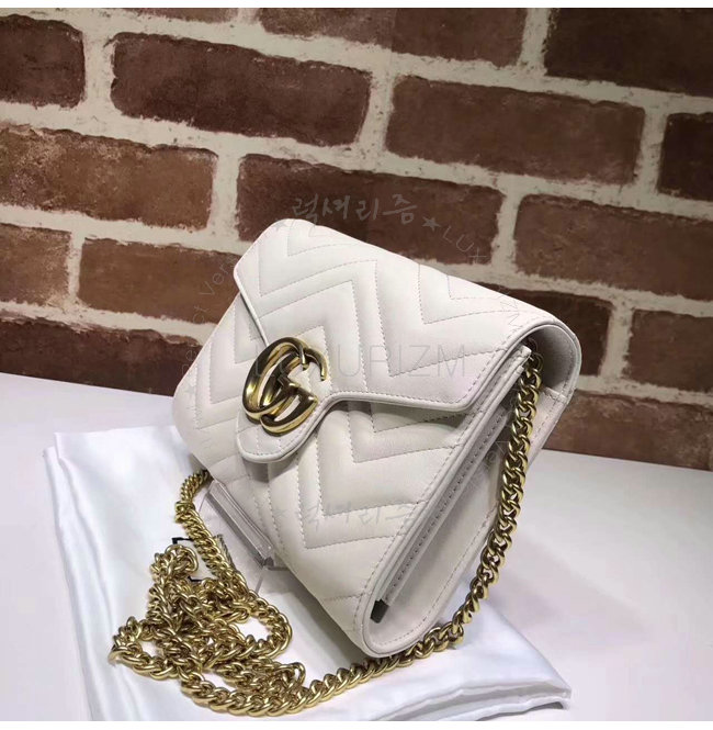 [스페셜오더]GUCCI-474575 9022 구찌 GG Marmont 마틀라세 가죽 미니 체인 백 화이트
