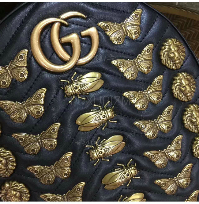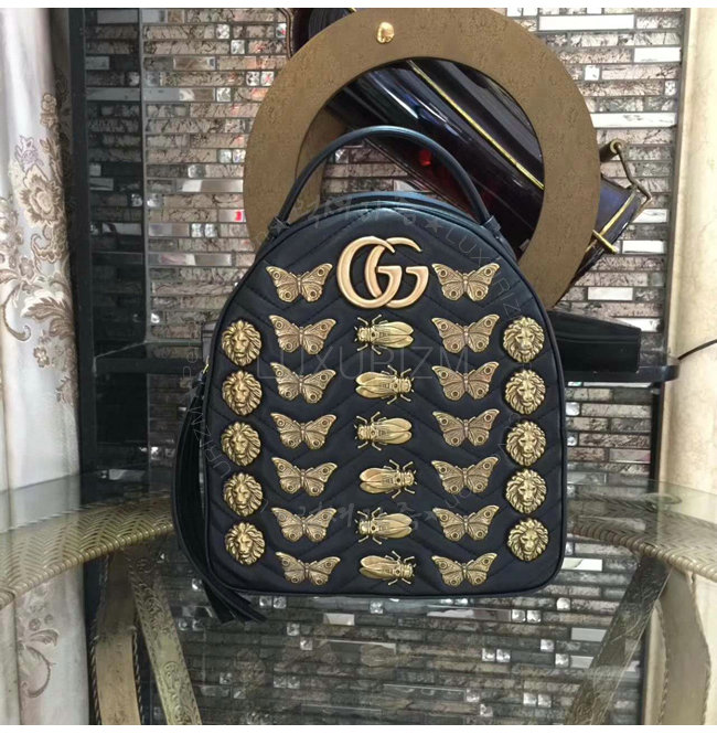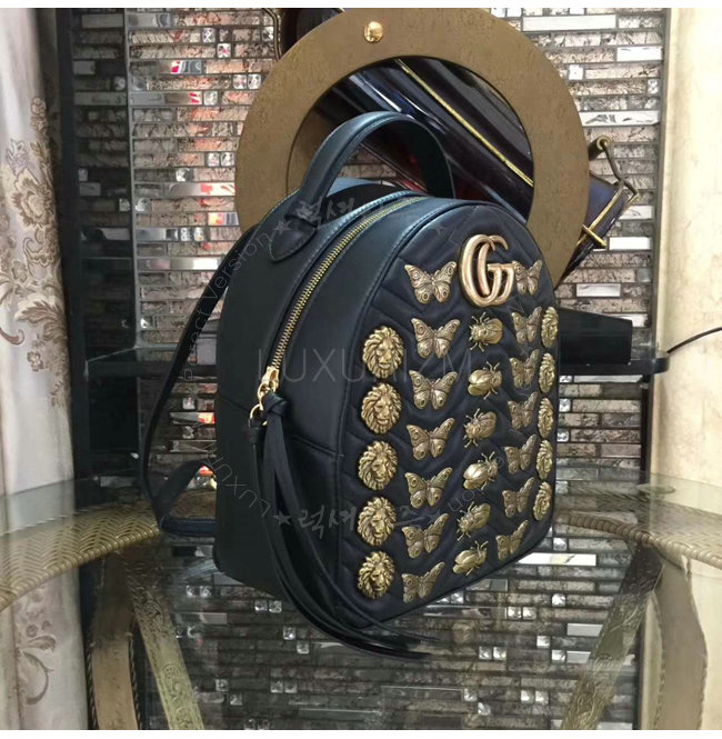 [스페셜오더]GUCCI-476671 1000 구찌 GG Marmont 퀼트 가죽 애니멀 스터드 백팩 블랙
