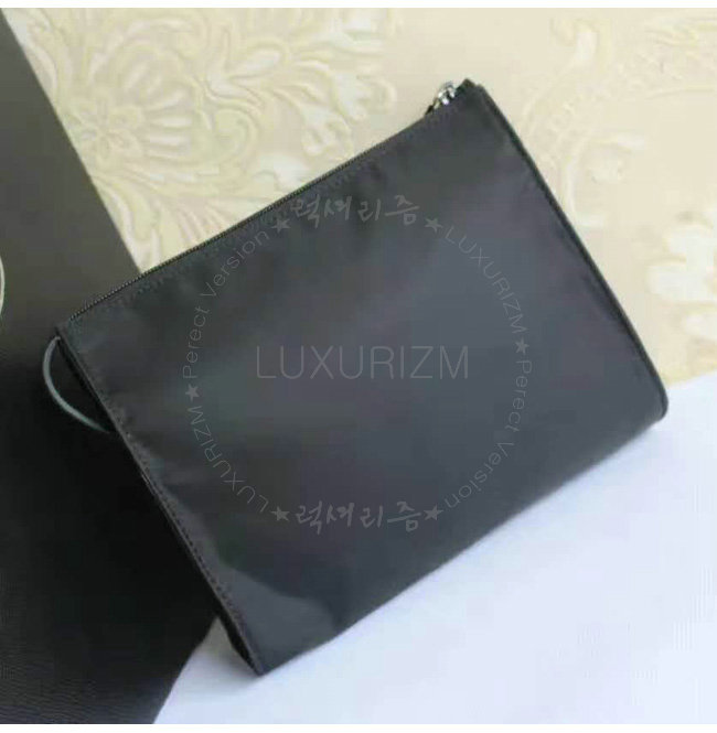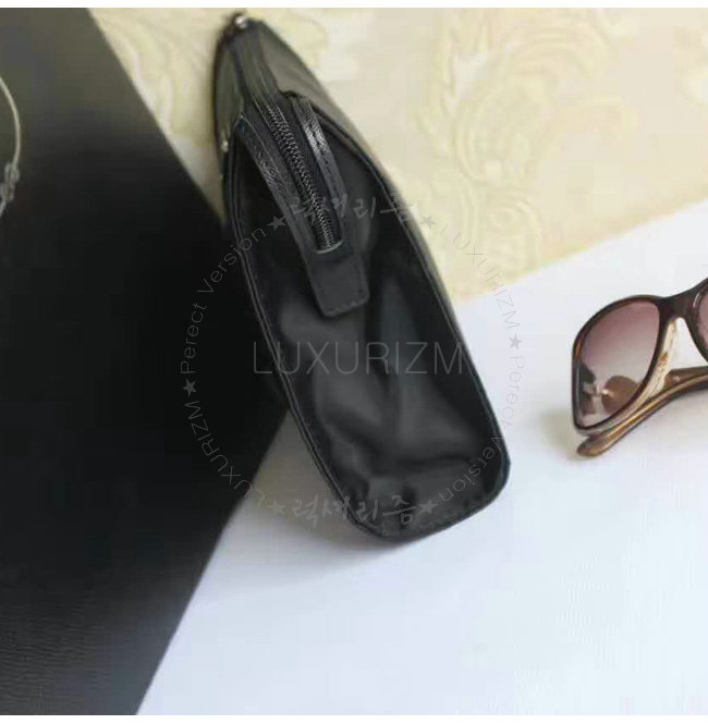 사피아노 가죽 트림으로 장식된 나일론 코스메틱 파우치 폴리시드 스틸 하드웨어 나일론